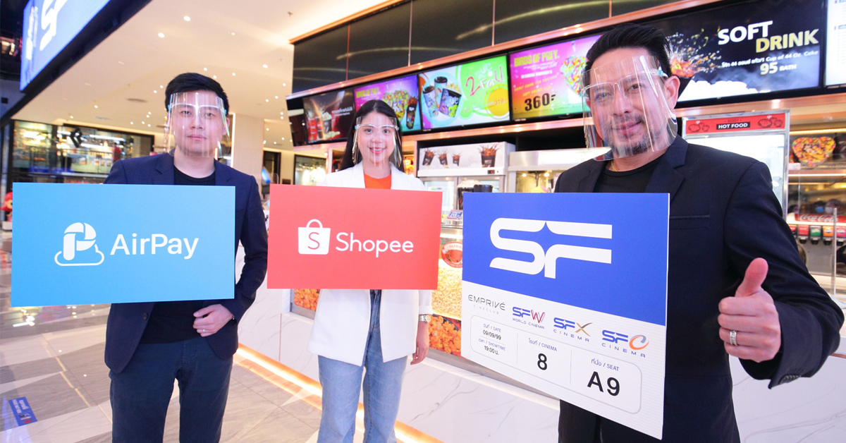 คุณเดชา ธรรมชัยพิเนต ผู้อำนวยการฝ่ายพัฒนาธุรกิจ บริษัท เอส เอฟ คอร์ปอเรชั่น จำกัด (มหาชน) ร่วมกับ คุณสุชญา ปาลีวงศ์ ผู้จัดการฝ่ายการตลาด บริษัท ช้อปปี้ (ประเทศไทย) จำกัด และ คุณศุภวิทย์ หงส์อมรสิน ผู้อำนวยการฝ่ายธุรกิจ บริษัท แอร์เพย์ (ประเทศไทย) จำกัด มอบส่วนลดสุดคุ้มเพื่อคอหนัง รับสิทธิ์ซื้อบัตรชมภาพยนตร์ในเครือ เอส เอฟ ทุกสาขาในราคาพิเศษ เพียงกดรับคูปองส่วนลดและซื้อผ่านแอปพลิเคชัน Shopee พร้อมชำระเงินผ่าน AirPay Wallet ตั้งแต่วันที่ 23-26 กรกฎาคม 2563 กับคุ้มที่ 1 รับส่วนลด 70% (จำกัดส่วนลดสูงสุด 200 บาท) เมื่อลูกค้ามียอดซื้อบัตรชมภาพยนตร์ขั้นต่ำ 280 บาท จำกัดเพียง 1 คนต่อ 1 สิทธิ์เท่านั้น (สิทธิพิเศษมีจำนวนจำกัด)