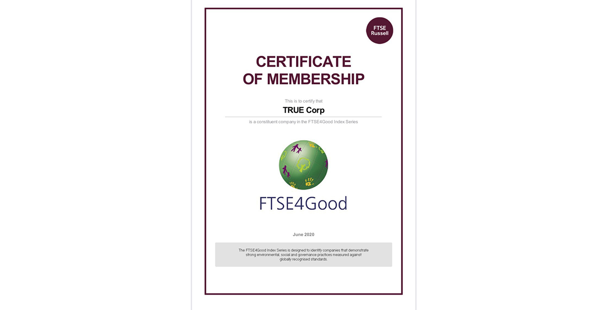 มิติหุ้น – บริษัท ทรู คอร์ปอเรชั่น จำกัด (มหาชน) ได้รับคัดเลือกให้เป็นสมาชิกดัชนีความยั่งยืนระดับโลก FTSE4Good ต่อเนื่องเป็นปีที่ 4 จาก FTSE Russell ในรอบการประเมินเดือนมิถุนายน ปี 2563 ที่ผ่านมา สะท้อนความเป็นองค์กรธุรกิจที่มีความรับผิดชอบต่อสิ่งแวดล้อมและสังคม รวมถึงมีบรรษัทภิบาลที่แข็งแกร่ง ภูมิใจได้รับคะแนนประเมินด้านสิ่งแวดล้อมสูงสุดในกลุ่มอุตสาหกรรมโทรคมนาคมทั่วโลก ซึ่งเป็นผลมาจากความสำเร็จในการบริหารจัดการ การเปลี่ยนแปลงสภาพภูมิอากาศ และมีส่วนร่วมลดผลกระทบต่อสิ่งแวดล้อมในวงกว้าง ผ่านการดำเนินงานลดการปล่อยก๊าซเรือนกระจก ลดการใช้ไฟฟ้า ลดการใช้น้ำ จัดการขยะ ตลอดจนเพิ่มสัดส่วนการใช้พลังงานทดแทนและพลังทางเลือก ตามเป้าหมายในการดำเนินธุรกิจอย่างยั่งยืน