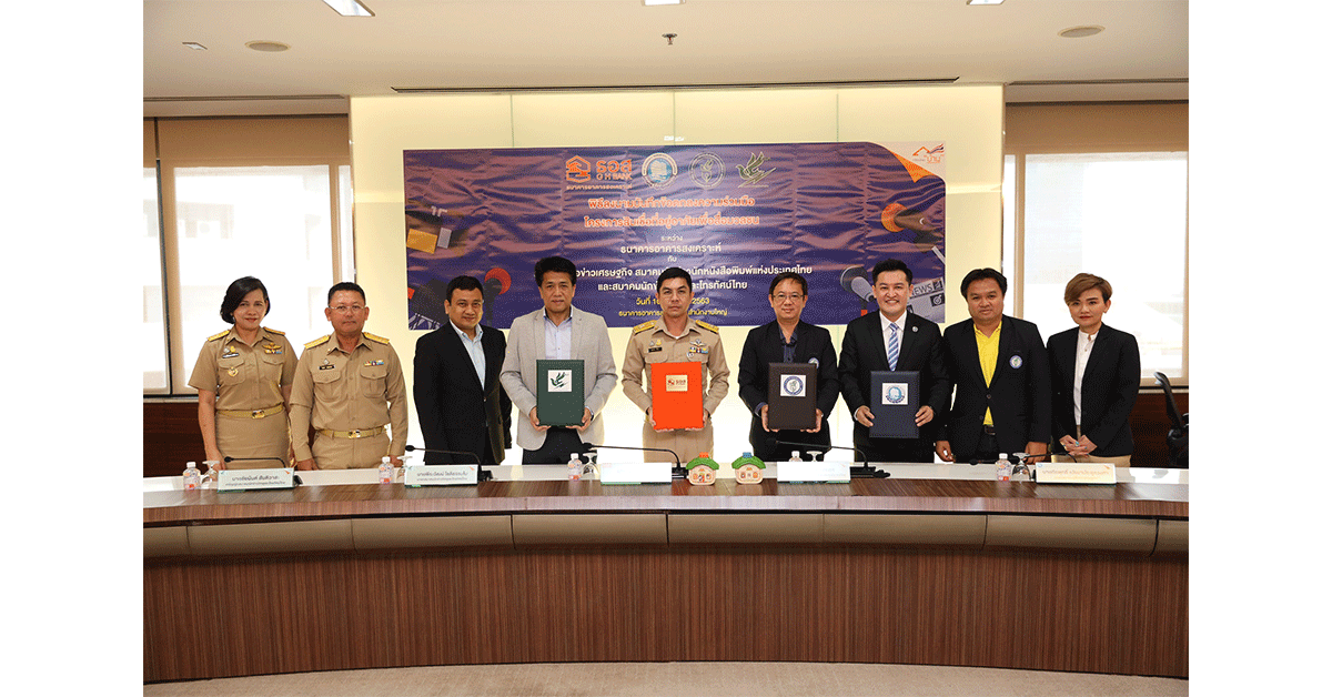มิติหุ้น-นายฉัตรชัย ศิริไล กรรมการผู้จัดการ ธนาคารอาคารสงเคราะห์ (ธอส.) นายมงคล บางประภา นายกสมาคมนักข่าวนักหนังสือพิมพ์แห่งประเทศไทย นายพีระวัฒน์ โชติธรรมโม นายกสมาคมนักข่าววิทยุและโทรทัศน์ไทย และนายถิรพุทธิ์ เปรมาประยูรวงศา นายกสมาคมผู้สื่อข่าวเศรษฐกิจ ร่วมลงนามในบันทึกความร่วมมือ (MOU) โครงการสินเชื่อที่อยู่อาศัยเพื่อสื่อมวลชน ปี 2563 ซึ่งจัดทำขึ้นโดยมีวัตถุประสงค์เพื่อส่งเสริมให้สื่อมวลชนสมาชิกของทั้ง 3 สมาคม ได้มีที่อยู่อาศัยเป็นของตนเอง เพื่อยกระดับคุณภาพชีวิต และเพิ่มความมั่นคงให้กับตนเองและครอบครัวต่อไป ทั้งนี้ พิธีลงนามดังกล่าวจัดขึ้น ณ ห้องประชุม ชั้น 10 ธนาคารอาคารสงเคราะห์ สำนักงานใหญ่ พระราม 9 เมื่อวันที่ 10 สิงหาคม 2563