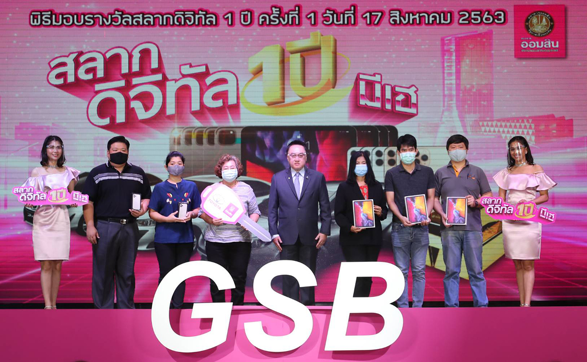 มิติหุ้น – นายอิสระ วงศ์รุ่ง รองผู้อำนวยการธนาคารออมสิน กลุ่มลูกค้าบุคคล เป็นประธานในพิธีมอบรางวัลให้แก่ผู้โชคดีจากกิจกรรม “สลากดิจิทัล 1 ปี มีเฮ” ครั้งที่ 1 ให้กับผู้ที่ฝากสลากออมสินดิจิทัล 1 ปี รวม 6 รางวัล โดยมีผู้โชคดีได้รับรางวัลรถยนต์ Toyota Yaris รุ่น ATIV Mid จำนวน 1 รางวัล iPhone 11 Pro (256 GB) จำนวน 2 รางวัล และ iPad Pro 11 นิ้ว (256 GB) จำนวน 3 รางวัล ทั้งนี้เพื่อส่งเสริมการออมให้กับประชาชน และเป็นการขอบคุณลูกค้าที่ให้การสนับสนุนผลิตภัณฑ์และบริการของธนาคารมาอย่างต่อเนื่อง โดยมีคณะผู้บริหารและพนักงานธนาคารออมสิน ร่วมเป็นสักขีพยานในการมอบรางวัลดังกล่าว ณ ธนาคารออมสิน สำนักงานใหญ่ เมื่อวันที่ 17 สิงหาคม 2563