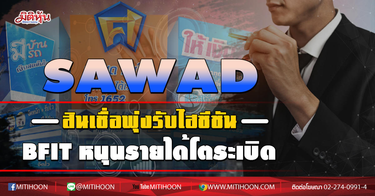 มิติหุ้น- SAWAD ย้ำเป้าพอร์ตสินเชื่อเติบโต 20 % แผนเดิม ไตรมาส3/63 โตต่อรับอานิสงส์ช่วงไฮซีซัน และเร่งขยายสาขา อีก 200-300 สาขา โบรกฟันธงปีนี้กำไรแตะ 4,247 ล้านบาท เคาะเป้า 75 บาท/หุ้น