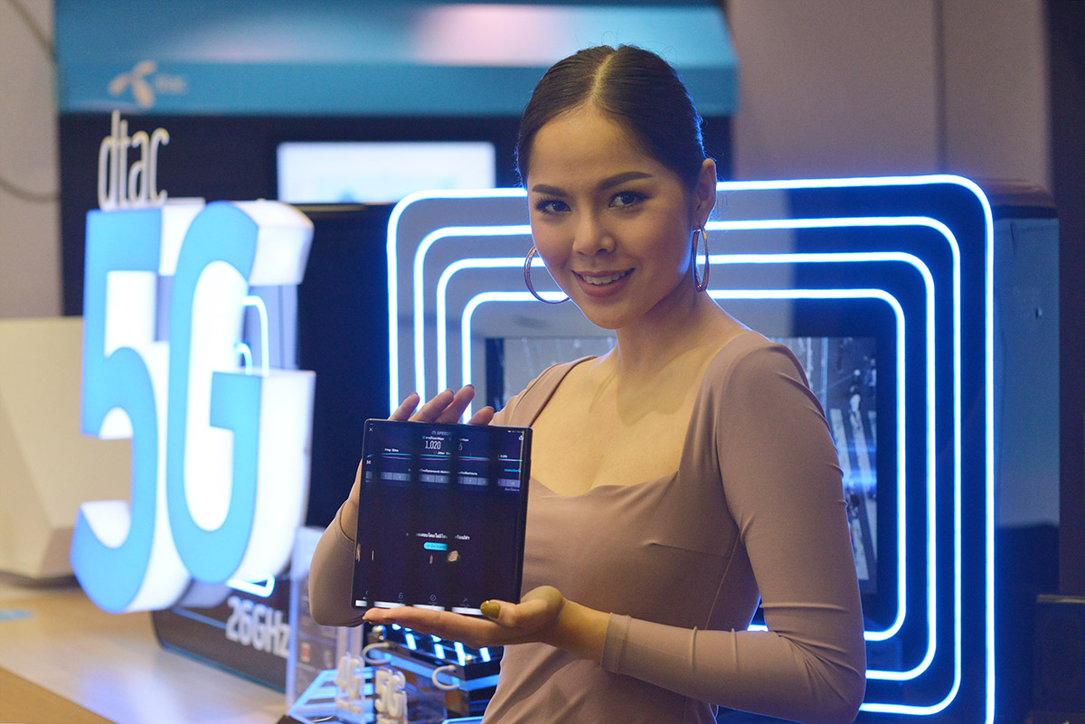 นายพีระพล ฉัตรอนันทเวช ผู้อำนวยการฝ่ายผลิตภัณฑ์และอุปกรณ์โทรศัพท์เคลื่อนที่ บริษัท โทเทิ่ล แอ็คเซ็ส คอมมูนิเคชั่น จำกัด (มหาชน) หรือดีแทค แนะนำการทดสอบสมาร์ทโฟน 5G คลื่น 26 GHz ครั้งแรกในไทย โดยทดสอบผ่านสมาร์ทโฟน HUAWEI Mate Xs รุ่นพิเศษที่ออกแบบรองรับ 5G Millimeter wave (mmWave) หรือคลื่นความถี่ย่าน 26 GHz ซึ่งเป็นคลื่นแห่งอนาคตรองรับภาคอุตสาหกรรม แต่ด้วยเทคโนโลยีการออกแบบพิเศษสามารถนำคลื่น mmWave มาใช้กับสมาร์ทโฟนเพื่อให้ลูกค้าดีแทคได้ลองใช้งาน ดีแทคชวนลูกค้าเริ่มทดสอบได้แล้วที่ศูนย์บริการดีแทครวม 7 แห่ง