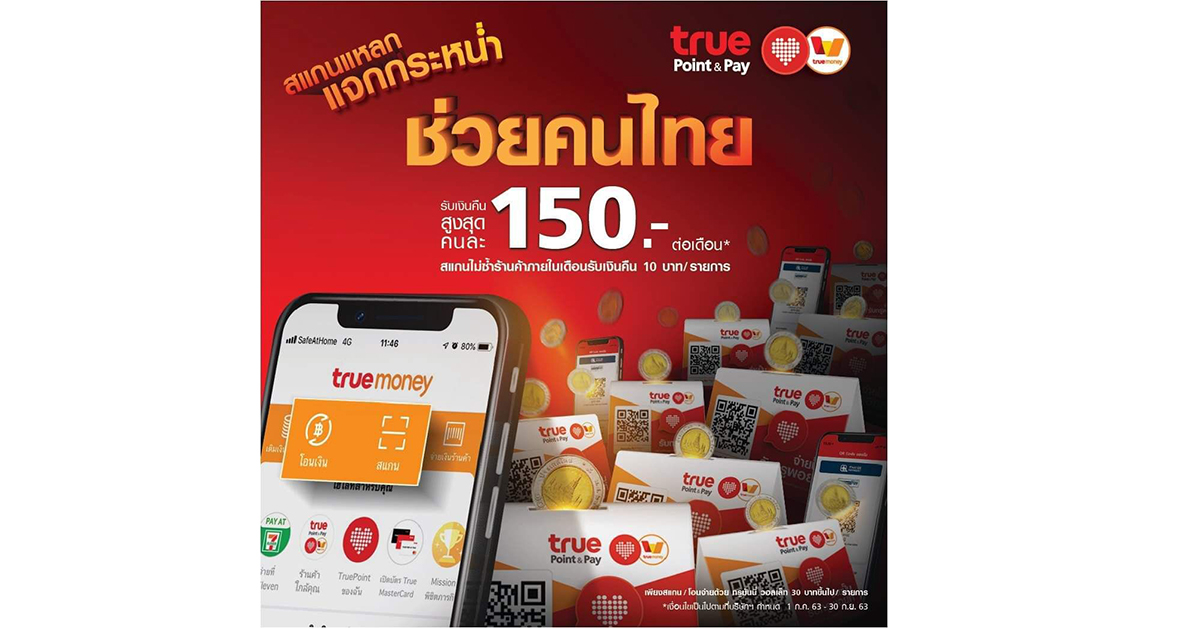 ยุคนี้ประหยัดยังไงดี?…ทรู ร่วมแบ่งเบา ส่งแคมเปญ “สแกนแหลก แจกกระหน่ำ ช่วยคนไทย” เพียงโอนหรือสแกนจ่ายด้วยแอปทรูมันนี่ วอลเล็ท ณ ร้านค้าที่มีสัญลักษณ์ True Point & Pay ที่ร่วมรายการ ช่วยประหยัดและรับเงินคืนเข้ากระเป๋าง่ายๆ สูงสุด 150 บาท/เดือน ตั้งแต่วันนี้ – 30 กันยายน 2563