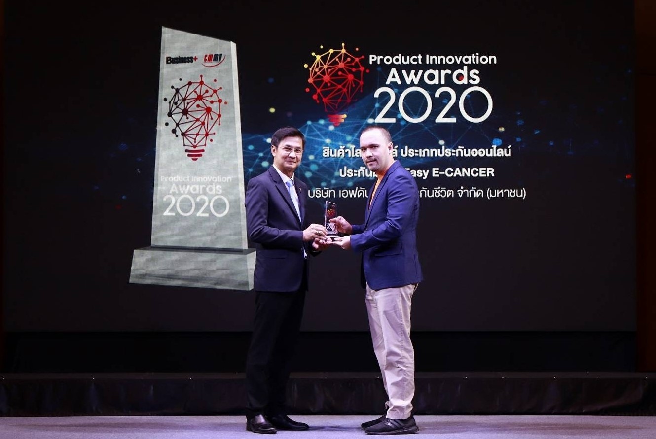 นายปฎล จิรสันติ์ ผู้อำนวยการอาวุโส การตลาดดิจิตอลและอีคอมเมิร์ซ ฝ่ายบริหารกลยุทธ์ลูกค้าและดิจิตอล บริษัท เอฟดับบลิวดี ประกันชีวิต จำกัด (มหาชน) รับรางวัล “BUSINESS+ PRODUCT INNOVATION 2020” จัดโดยนิตยสาร BUSINESS+ ร่วมกับ คณะวิทยาลัยการจัดการ มหาวิทยาลัยมหิดล ร่วมกันคัดเลือกสินค้าและบริการที่มีนวัตกรรมยอดเยี่ยมแห่งปี 2563 จากนั้นเข้าสู่กระบวนการลงคะแนนจากผู้บริโภคผ่านทางสื่อออนไลน์ เพื่อคัดสรรสุดยอดสินค้าและบริการนวัตกรรมยอดเยี่ยมแห่งปี 2563 ซึ่งผลิตภัณฑ์ “ประกันมะเร็ง Easy E-Cancer” ได้รับคะแนนโหวตจากผู้บริโภคสูงสุด