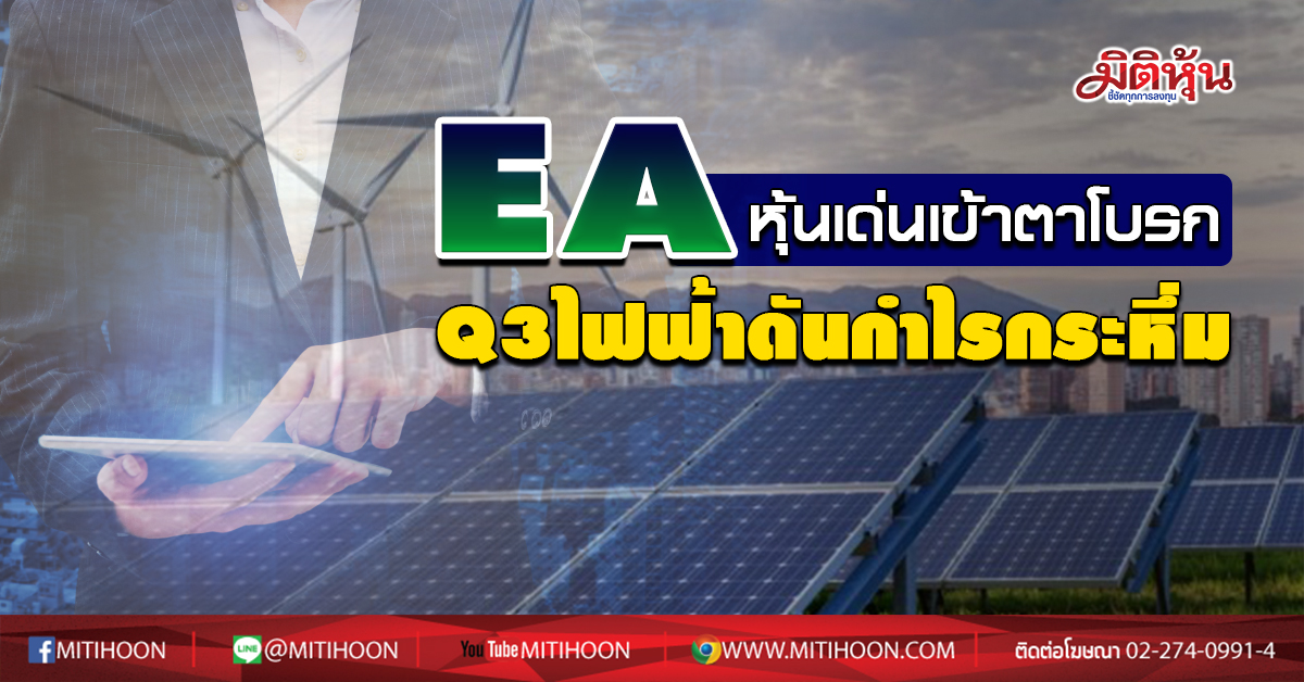 มิติหุ้น – EA ผลงานไตรมาส 3/63 เด่นเข้าตาโบรกฯ ได้อานิสงส์ไฮซีซันธุรกิจโรงไฟฟ้าพลังงานลมหนุนผลิตกระแสไฟฟ้าเพิ่ม ส่วนหน่วยธุรกิจใหม่อื่นเริ่มทยอยรับรู้รายได้เสริมแกร่ง ให้คำแนะนำ “ถือ” เคาะเป้า 47.50บาท ฟากผู้บริหารลั่นรายได้ปีหน้าโตอีก 30%