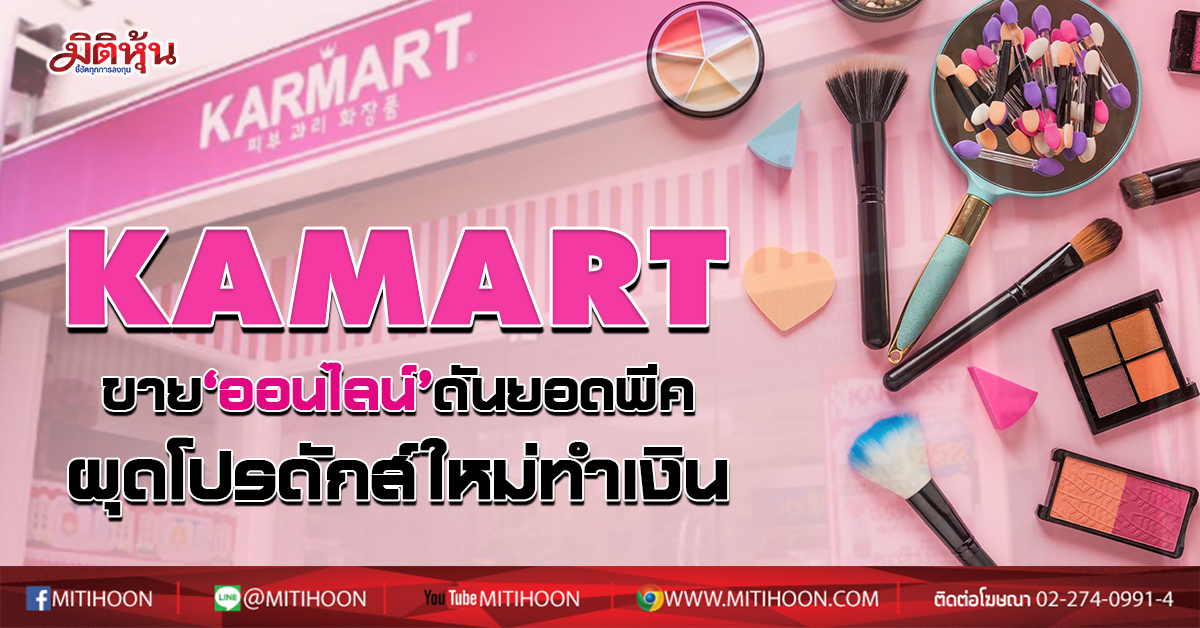 รวมถึงเจาะช่องทางการขาย “ออนไลน์” เพื่อตอบสนองความต้องการของลูกค้าได้อย่างรวดเร็วสามารถซื้อขายได้ทุกที่ทุกเวลา โดยมี 3 ช่องทาง ได้แก่ 1. www.karmarts.com , 2. การขายผ่าน Social Commerce ได้แก่ Line official account: @karmart , @karmarts_onlineshop ,Facebook และInstagram official account: Karmartsclub รวมถึง Facebook และ Instagram ของแบรนด์ต่างๆ ในบริษัท , 3. การขายผ่าน Marketplace ได้แก่ Lazada, Shopee, Konvy, ShopAT24, Looksi, JD Central, Weloveshopping,411, Line Gift Shop, Shobshop และ Buzzebees เป็นต้น