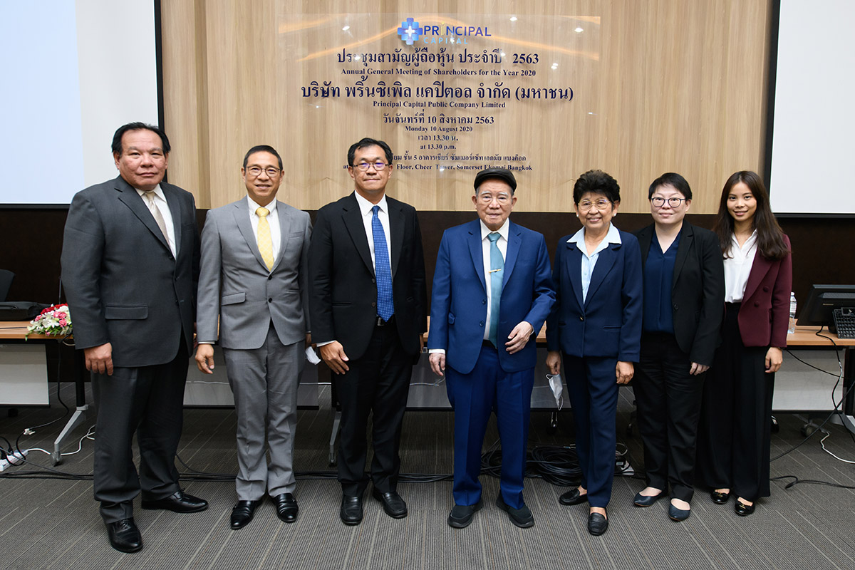 มิติหุ้น – นายแพทย์พงษ์ศักดิ์ วิทยากร (กลาง) ประธานในที่ประชุม นายสาธิต วิทยากร (ที่2จากซ้าย) ประธานคณะกรรมการบริหาร และกรรมการผู้จัดการ บริษัท พริ้นซิเพิล แคปิตอล จำกัด(มหาชน) หรือ PRINC พร้อมด้วยคณะกรรมการบริษัทฯ จัดการประชุมสามัญผู้ถือหุ้นประจำปี 2563 โดยที่ประชุมผู้ถือหุ้นมีมติอนุมัติในทุกวาระที่บริษัทฯ เสนอ พร้อมทั้งรับทราบผลการดำเนินงานประจำปี 2562 ณ ห้องออดิธอเรียม ชั้น 5 อาคารเชียร์ซัมเมอร์เซ็ท เอกมัย แบงค็อกเมื่อเร็วๆนี้