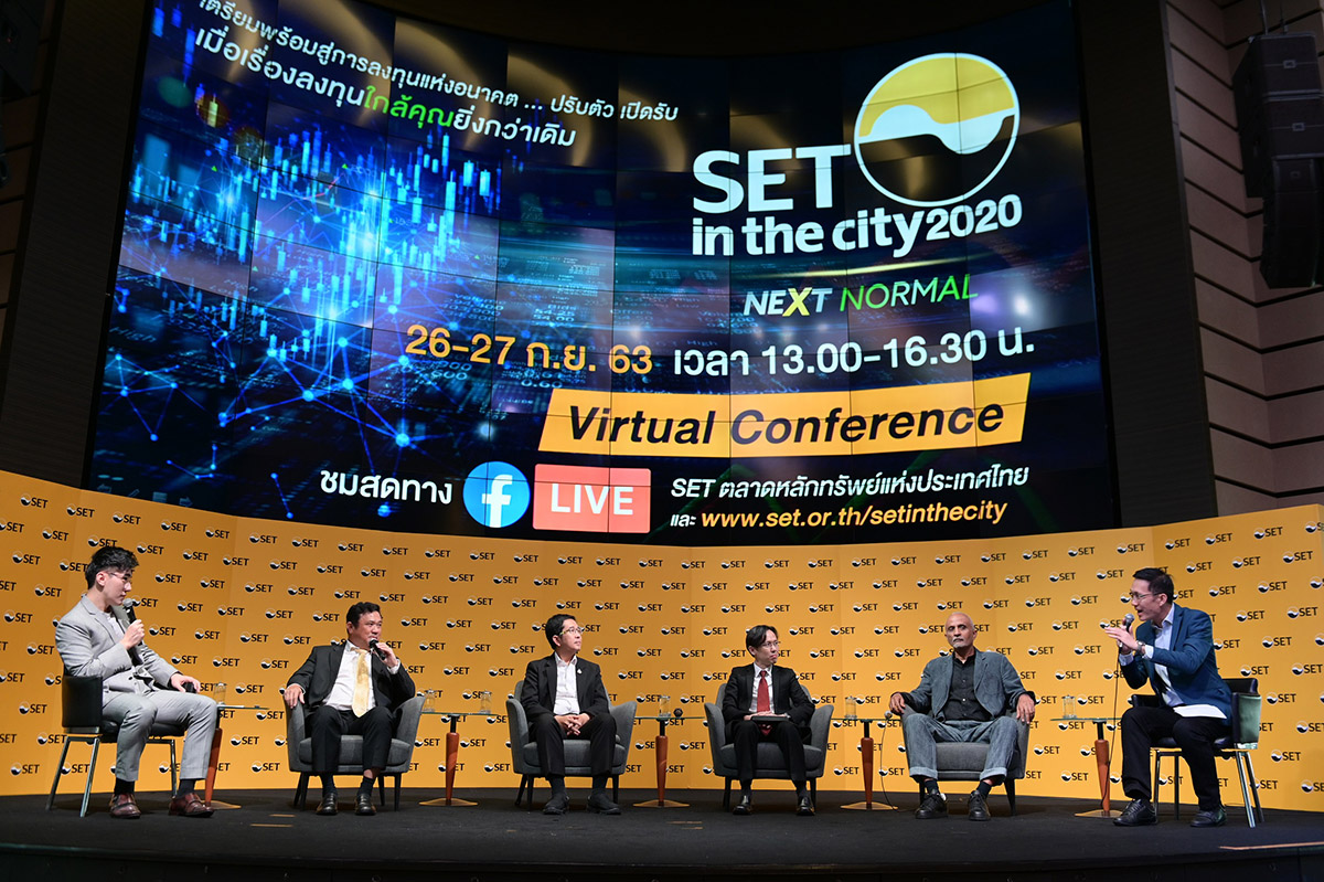 มิติหุ้น – ตลาดหลักทรัพย์แห่งประเทศไทย จัดงาน SET in the City 2020 : Next Normal เมื่อ 26–27 กันยายน ที่ผ่านมา ในรูปแบบ Virtual Conference เป็นครั้งแรกเพื่อให้สอดรับกับพฤติกรรมผู้ลงทุนในยุคดิจิทัล เตรียมความพร้อมสู่การลงทุนแห่งอนาคตกับ 4 หัวข้อสัมมนา “เปิดกลยุทธ์นอกตำรา…ฝ่าวิกฤติ” “หาหุ้นเติบโต ฝ่า COVID” “สร้าง Money ให้ Growth กับโค้ชการเงิน หนุ่ม Money Coach” และ “การลงทุนยุคใหม่ ภายใต้ New Norm” นำเสนอมุมมอง แนวคิด และการแลกเปลี่ยนประสบการณ์ จากผู้บริหารบริษัทจดทะเบียน บริษัทหลักทรัพย์ นักวิเคราะห์การลงทุน และผู้เชี่ยวชาญด้านการวางแผนการเงินการลงทุน โดยตลอดกิจกรรมได้รับผลตอบรับที่ดี มีผู้สนใจจากทั่วประเทศ ร่วมรับชมกว่า 450,000 การรับชม รวมทั้งร่วมแสดงความเห็นและสอบถามข้อมูลผ่านการรับชมสดอย่างคึกคัก แสดงให้เห็นถึงมิติใหม่ของผู้ลงทุนไทยที่ปรับตัวและใช้ประโยชน์จากดิจิทัลในการเข้าถึงความรู้และข้อมูลการลงทุนในวงกว้าง และจากความสำเร็จในครั้งนี้ ตลาดหลักทรัพย์ฯ จะจัดกิจกรรมสัมมนาในรูปแบบ Virtual Conference ขึ้นอีกครั้งในเดือนพฤศจิกายนนี้