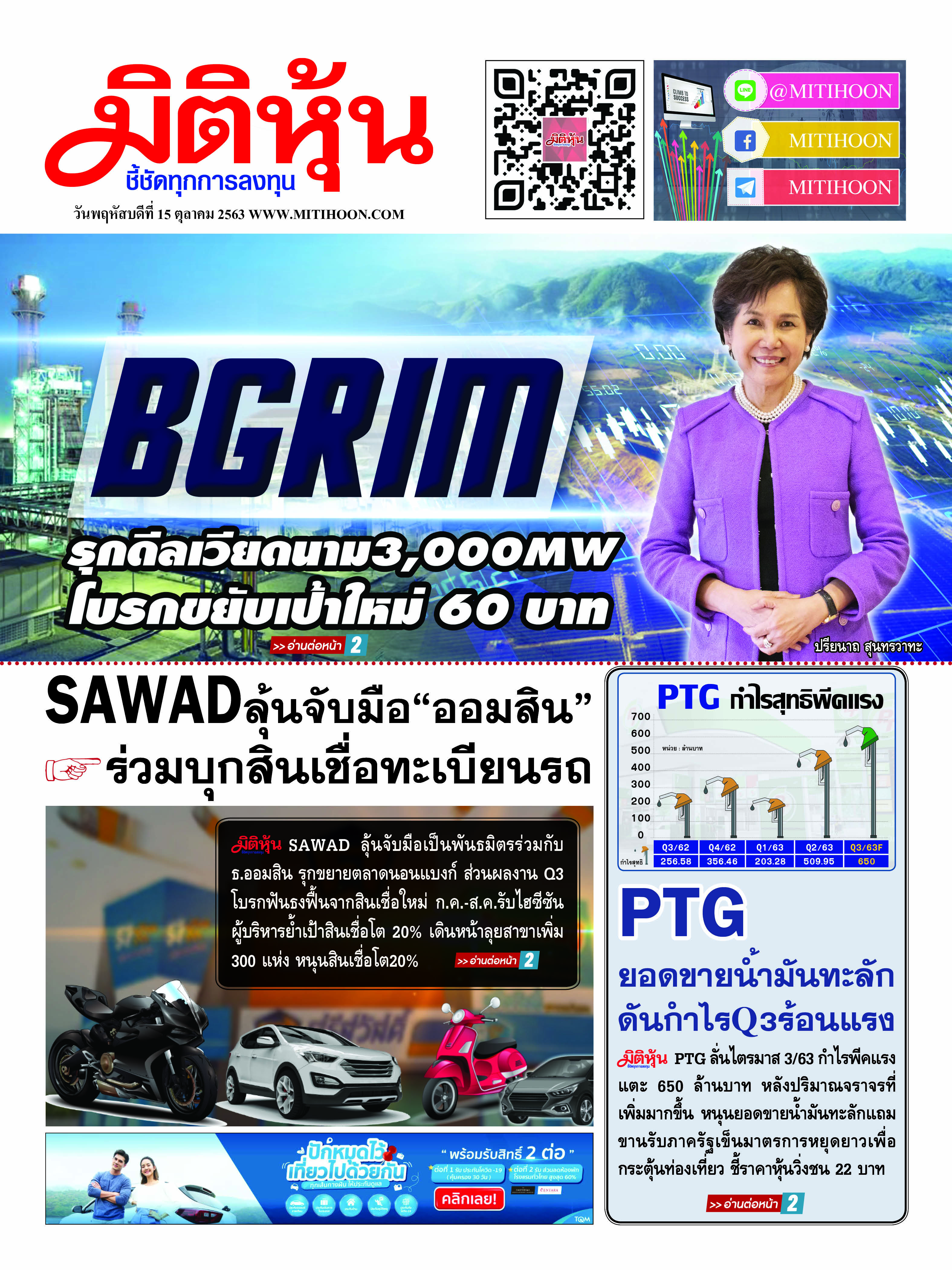 นสพ.มิติหุ้น “ชี้ชัดทุกการลงทุน” ฉบับวันที่ 15 ตุลาคม 2563