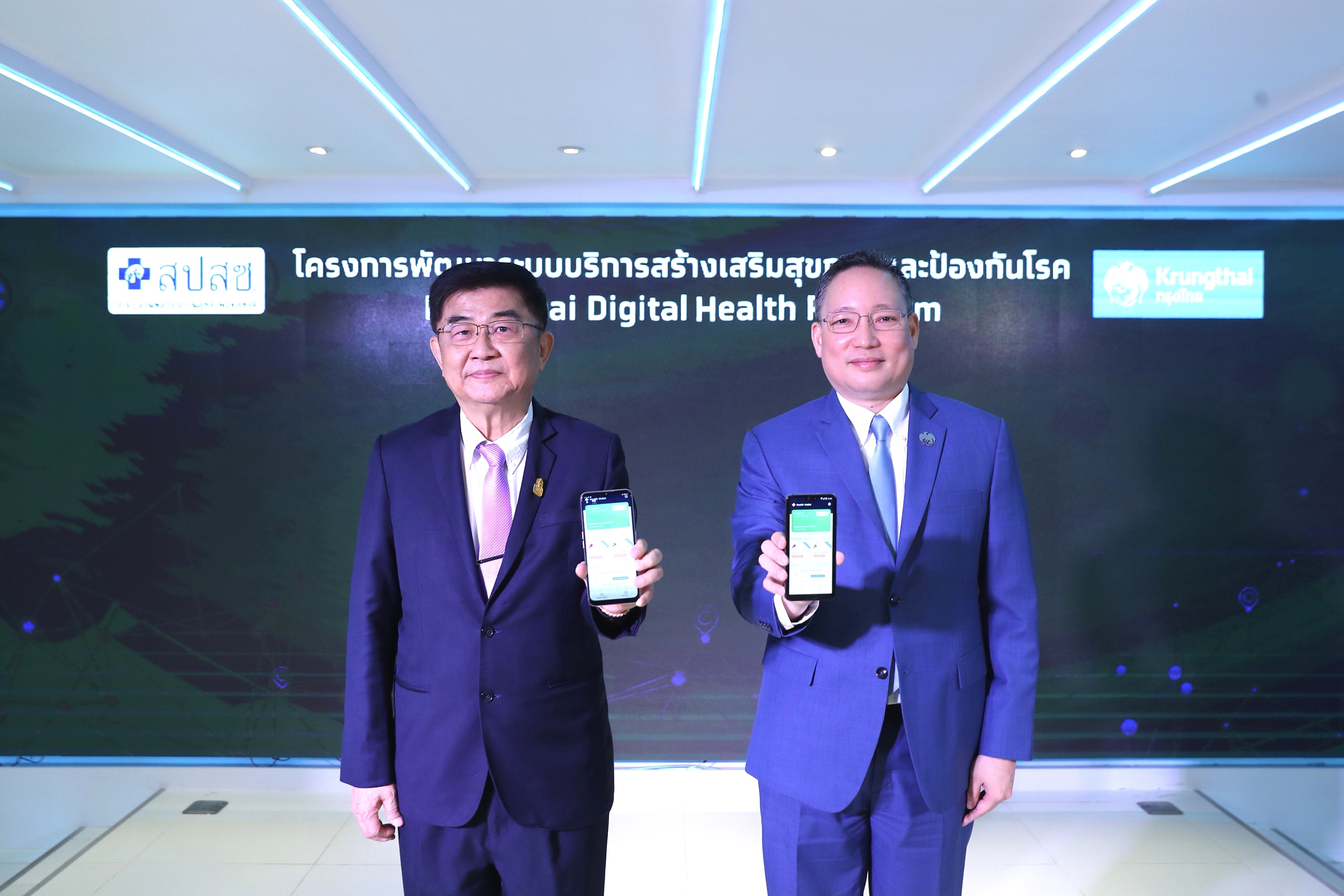 มิติหุ้น-นายแพทย์ศักดิ์ชัย กาญจนวัฒนา เลขาธิการสำนักงานหลักประกันสุขภาพแห่งชาติ(สปสช.) นายผยง ศรีวณิช กรรมการผู้จัดการใหญ่ ธนาคารกรุงไทย ร่วมแถลงข่าว โครงการพัฒนาระบบบริการสร้างเสริมสุขภาพและป้องกันโรค ด้วย Krungthai Digital Health Platform ที่ Krungthai Innovation Lab อาคารสำนักงานใหญ่