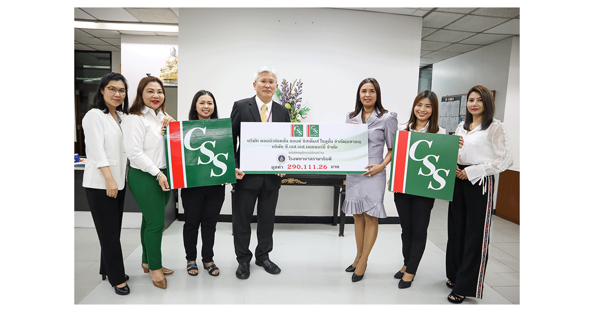 มิติหุ้น-บมจ.คอมมิวนิเคชั่น แอนด์ ซิสเต็มส์ โซลูชั่น (CSS) และบริษัท ซี.เอส.เอส เอนเนอร์ยี่ จำกัด(บริษัทย่อย)นำโดยคุณภณิดา เศวตวรรณรัตน์ (ที่ 3 จากขวา) กรรมการผู้จัดการสายงานการเงินบัญชี พร้อมด้วยตัวแทนพนักงานบริษัท ร่วมมอบอุปกรณ์ส่องสว่างมูลค่า 290,111.26 บาท ให้โรงพยาบาลรามาธิบดี โดยมี รองศาสตราจารย์ นายแพทย์ สุรศักดิ์ ลีลาอุดมลิปิ ผู้อำนวยการโรงพยาบาลรามาธิบดี เป็นตัวแทนรับมอบ เมื่อเร็วๆ นี้