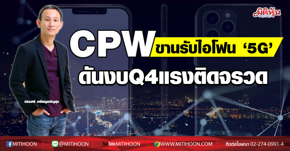 ผู้สื่อข่าว “มิติหุ้น” รายงานว่า บมจ.คอปเปอร์ ไวร์ด หรือ CPW ทำธุรกิจจัดจำหน่ายค้าปลีกและค้าส่งสินค้าประเภทดิจิทัลไลฟ์สไตล์ โดย “นายปรเมศร์ เหรียญเจริญสุข” ประธานเจ้าหน้าที่บริหาร CPW เปิดเผยว่า แนวโน้มผลงานไตรมาส 4/63 จะเติบโตสูงสุดของปี เพราะเป็นช่วงไฮซีซั่นของธุรกิจ ซึ่งจะมีสินค้าใหม่แบรนด์ชั้นนำทยอยเปิดตัวและวางจำหน่ายมากขึ้น ล่าสุดเตรียมเปิดตัว iPhone12 ,Apple Watch ,iPad คาดจะสนับสนุนให้ยอดขายของ CPW เติบโตได้ตามแผน