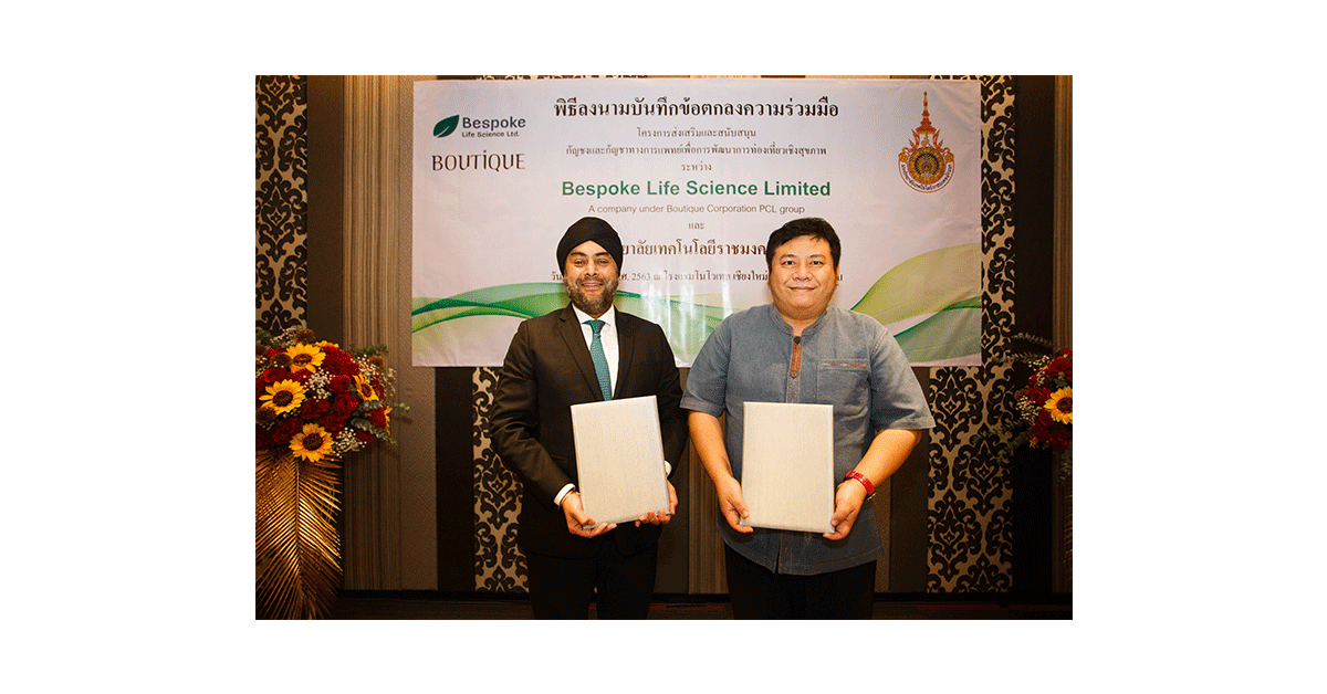 มิติหุ้น-บริษัท บีสโปค ไลฟ์ ไซเอนซ์ จำกัด ซึ่งเป็นบริษัทภายใต้ บริษัท บูทิค คอร์ปอเรชั่น จำกัด (มหาชน) (BC) ลงนามในบันทึกความเข้าใจ (MOU) ร่วมกับมหาวิทยาลัยเทคโนโลยีราชมงคลล้านนา น่าน (มทร.ล้านนา) เพื่อร่วมมือและส่งเสริมการวิจัย พัฒนา ปลูก แปรรูปและการพัฒนาผลิตภัณฑ์กัญชงและกัญชาแผนไทยเพื่อสุขภาพ (Thai traditional wellness) โดยมี ดร.สุรพล ใจวงศ์ษา รองอธิการบดีฝ่ายวิจัยและบริการวิชาการ มหาวิทยาลัยเทคโนโลยีราชมงคลล้านนา และ นายปรับชะรันซิงห์ ทักราล ประธานเจ้าหน้าที่บริหารกลุ่มบริษัทในเครือบูทิค คอร์ปอเรชั่น เข้าร่วมในพิธีลงนามเมื่อวันที่ 27 ตุลาคม 2563 ณ โรงแรม โนโวเทล เชียงใหม่ นิมมาน เจอร์นีย์ฮับ จ.เชียงใหม่
