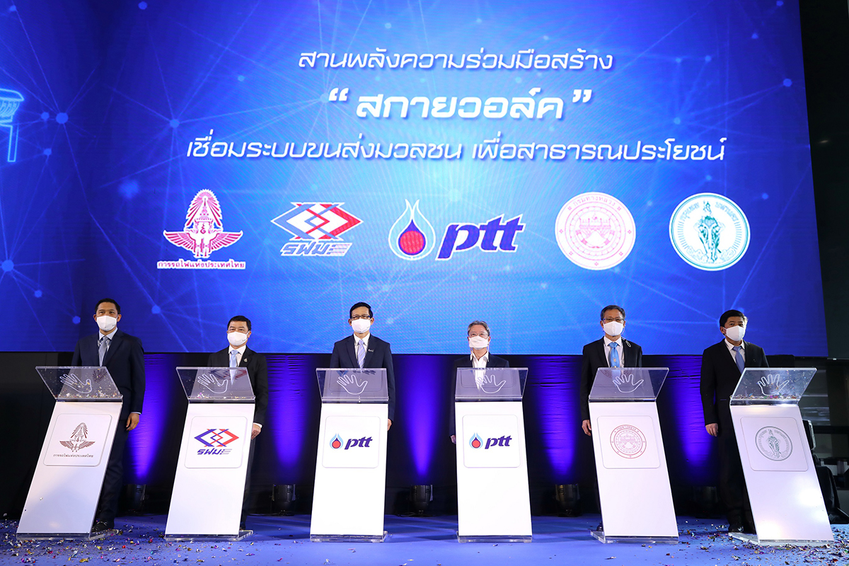 มิติหุ้น – นายไกรฤทธิ์ อุชุกานนท์ชัย ประธานกรรมการบริษัท ปตท. จำกัด (มหาชน) (ที่ 3 จากขวา) นายอรรถพล ฤกษ์พิบูลย์ ประธานเจ้าหน้าที่บริหารและกรรมการผู้จัดการใหญ่ บริษัท ปตท. จำกัด (มหาชน) (ที่ 3 จากซ้าย) นายภคพงศ์ ศิริกันทรมาศ ผู้ว่าการการรถไฟฟ้าขนส่งมวลชนแห่งประเทศไทย (ที่ 2 จากซ้าย) นายนิรุฒ มณีพันธ์ ผู้ว่าการการรถไฟแห่งประเทศไทย (ซ้าย) ดร.มนตรี เดชาสกุลสม ผู้อำนวยการสำนักงานทางหลวงที่ 13 กรมทางหลวง (ที่ 2 จากขวา) และ นายประพาส เหลืองศิรินภา รองผู้อำนวยการสำนักการจราจรและขนส่ง รักษาราชการแทนผู้อำนวยการสำนักการจราจรและขนส่ง กรุงเทพมหานคร (ขวา) ร่วมเปิดโครงการสานพลังความร่วมมือ สร้าง “สกายวอล์ค” เชื่อมระบบขนส่งมวลชน เพื่อสาธารณประโยชน์ โดยแบ่งเป็น 2 โครงการ สายสีเขียว ปรับปรุงสะพานลอยเดินเท้า เชื่อมจากสำนักงานใหญ่ ปตท. ไปยังรถไฟฟ้าสถานีห้าแยกลาดพร้าว และ สายสีน้ำเงิน ก่อสร้างสะพานลอยเดินเท้าจากสถานีบริการน้ำมัน ปตท. สำนักงานใหญ่ ไปสิ้นสุดที่รถไฟฟ้าสถานีพหลโยธิน โดยมีเป้าหมายให้ประชาชนในพื้นที่กรุงเทพมหานคร สามารถเดินทางได้อย่างสะดวก รวดเร็ว และปลอดภัย เชื่อมโยงระบบขนส่งสาธารณะทางราง เพิ่มประสิทธิภาพการจราจรให้มีความคล่องตัวยิ่งขึ้น โดยคาดว่าโครงการจะพร้อมให้บริการประชาชนภายในปี 2564
