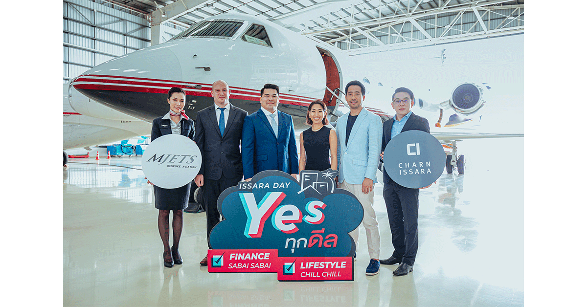 มิติหุ้น-บมจ. ชาญอิสสระ ดีเวล็อปเมนท์ นำโดย นายดิฐวัฒน์ อิสสระ (ที่สองจากขวา) ผู้ช่วยกรรมการผู้จัดการ สายงานสร้างสรรค์สื่อและเทคโนโลยี สารสนเทศ, นางสาวกรัชเพชร อิสสระ (ที่สามจากขวา) ที่ปรึกษาด้านการตลาด และนายกฤต หงส์จรรยา (ขวาสุด) ผู้ช่วยกรรมการผู้จัดการ สายงานการขายและการตลาด ร่วมกับ บริษัท เอ็มเจ็ท จำกัด โดย นายณัฏฐภัทร สีบุญเรือง (ที่สามจากซ้าย) ประธานเจ้าหน้าที่บริหาร และ นายฟิลิปป์ เลเซ่น ประธานเจ้าหน้าที่ฝ่ายพานิชย์ จับมือกันร่วมมอบข้อเสนอสุดพิเศษกับประสบการณ์การเดินทางท่องเที่ยวสุดเอ็กซ์คลูซีฟบนเครื่องบินส่วนตัวแบบเหนือระดับ สำหรับลูกค้าที่จองโครงการอิสสระ เรสซิเดนซ์ พระราม 9 บ้านเดี่ยวซูเปอร์ลักชัวรี่ใจกลางเมือง เพียง 20 หลัง ภายใต้แคมเปญ ISSARA DAY Yes ทุกดีล เพื่อเป็นหนึ่งในการสร้างประสบการณ์การเดินทางในแบบลักชัวรี่ให้แก่ลูกค้า โดยแคมเปญจะเริ่มตั้งแต่วันนี้ – 15 พฤศจิกายน 2563 สอบถามรายละเอียดเพิ่มเติม www.charnissara.com