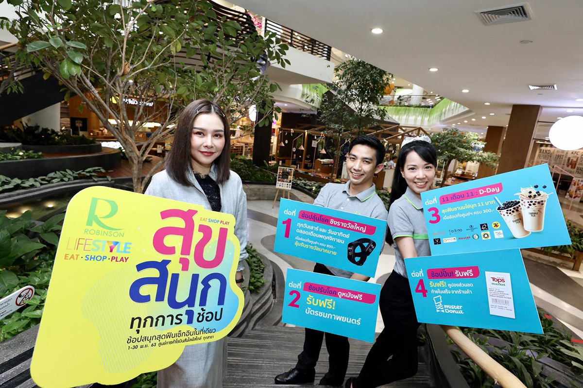 มิติหุ้น – นางสาวศิรดา ศรีธงชัย ผู้อำนวยการฝ่ายการตลาดศูนย์การค้าโรบินสันไลฟ์สไตล์ ในเครือเซ็นทรัล รีเทล กล่าวว่า เพื่อตอกย้ำการเป็นเดสติเนชั่น ‘กิน ช้อป เที่ยว’ ที่สมบูรณ์แบบ และตอบรับไลฟ์สไตล์ของนักช้อปยุคใหม่ที่ต้องการประสบการณ์ที่มากกว่าการช้อปปิ้งสะดวกแบบวันสต็อปเซอร์วิส ศูนย์การค้าโรบินสันไลฟ์สไตล์ จึงเดินหน้าเปิดแคมเปญ ‘EAT SHOP PLAY สุข สนุก ทุกการช้อป’ ให้นักช้อปได้ช้อปสนุกสุดฟินเช็กอินในที่เดียว ที่มาพร้อมดีลพิเศษเพื่อให้นักช้อปได้สัมผัสกับประสบการณ์ กิน ช้อป เที่ยว แบบจัดเต็ม ตั้งแต่วันที่ 1 – 30 พฤศจิกายน 2563 ที่ศูนย์การค้าโรบินสันไลฟ์สไตล์ 24 สาขาทั่วไทย