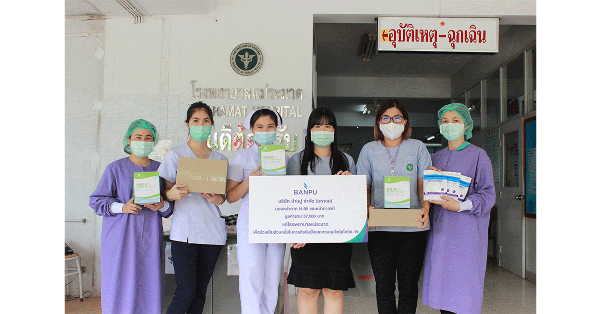บริษัท บ้านปู จำกัด (มหาชน) ตระหนักถึงความสำคัญในการป้องกันการแพร่ระบาดของเชื้อไวรัสโควิด-19 ในบริเวณพื้นที่เสี่ยงดังกล่าว จึงส่งมอบหน้ากาก N-95 ชุด PPE อุปกรณ์ทางการแพทย์อื่นๆ และเงินบริจาครวมทั้งสิ้น 2,758,000 บาท ให้แก่โรงพยาบาล 4 แห่งในพื้นที่ชายแดนจังหวัดตาก ได้แก่ โรงพยาบาลแม่สอด โรงพยาบาลแม่ระมาด โรงพยาบาลอุ้มผาง และโรงพยาบาลท่าสองยาง เพื่อสนับสนุนอุปกรณ์ทางการแพทย์ที่เกี่ยวเนื่อง สนับสนุน การทำงานและลดความเสี่ยงในการติดเชื้อของแพทย์และพยาบาลระหว่างการสุ่มตรวจเชิงรุกเพื่อค้นหาผู้ติดเชื้อตามมาตรการการคัดกรองของภาครัฐ