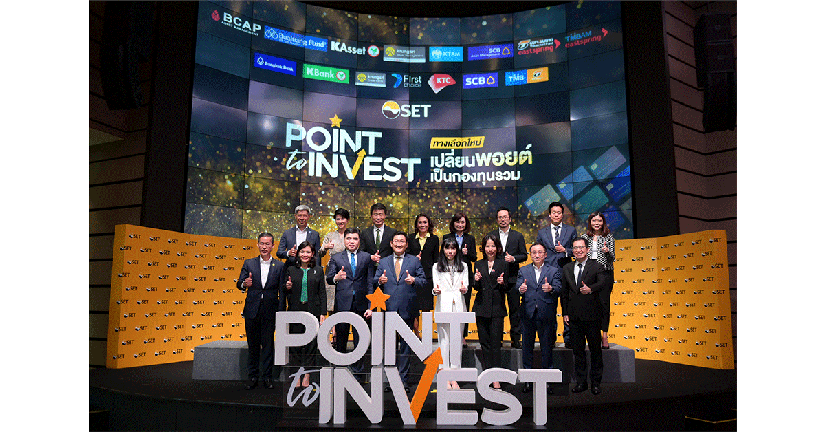 มิติหุ้น-ตลาดหลักทรัพย์แห่งประเทศไทย จับมือ 16 ผู้ให้บริการทางการเงิน แถลงข่าวเปิดตัวโครงการ “Point to Invest” ครั้งแรกในภาคตลาดทุน เปลี่ยนคะแนนสะสมบัตรเครดิตเป็นกองทุนรวม เพิ่มโอกาสสร้างความมั่งคั่ง ด้วยการเชื่อมโยงการใช้จ่ายสู่การลงทุน โดยมี ดร. ภากร ปีตธวัชชัย กรรมการและผู้จัดการ ตลาดหลักทรัพย์ฯ พร้อมด้วยผู้บริหารธนาคารพาณิชย์ บริษัทบัตรเครดิต และบริษัทหลักทรัพย์จัดการกองทุน ร่วมงาน เมื่อ 11 พ.ย. 2563 ผู้ถือบัตรเครดิตธนาคารกรุงเทพ ธนาคารกสิกรไทย ธนาคารทหารไทย ธนาคารไทยพาณิชย์ ธนาคารธนชาต บัตรเครดิต KTC บัตรเครดิต กรุงศรี และบัตรเครดิต กรุงศรีเฟิร์สช้อยส์ ดูรายละเอียดเพิ่มเติมที่ www.set.or.th/pointtoinvest