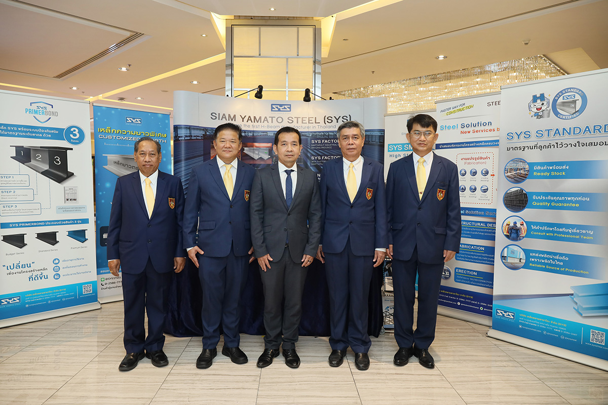 มิติหุ้น – บริษัท เหล็กสยามยามาโตะ จำกัด หรือ SYS ผู้ผลิตเหล็กเอชบีม ไวด์แฟรงค์ มานานมากกว่า 25 ปี โดย นายสยมภู เฮนะเกษตร (ที่ 3 จากซ้าย) ผู้จัดการส่วนขายโครงการและบริ