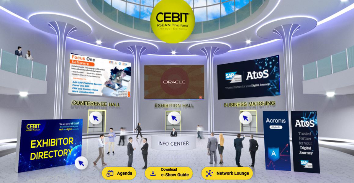 CEBIT ASEAN Thailand 2020 Virtual Edition ถือเป็นครัง้แรกที่จัดขึน้ในรูปแบบงานแสดงสินค้าเชิง ธุรกิจแบบออนไลน์ที่รวบรวมแบรนด์ชนั้น าด้านเทคโนโลยีและดิจิทลักว่า 70 แบรนด์จาก 7 ประเทศ โดย งานนีเ้ปิดให้เข้าร่วมงาน 24 ชวั่โมงตลอดทงั้ 7 วนัเพื่อเป็นเวทีรวบรวมผ้เูชี่ยวชาญด้านเทคโนโลยีและดจิิทลั จากทวั่ภมูิภาคเพื่อร่วมสร้างความสมัพนัธ์ทางธรุกิจ, สร้างโอกาสทางธรุกิจและสร้างคคู่้าใหม่