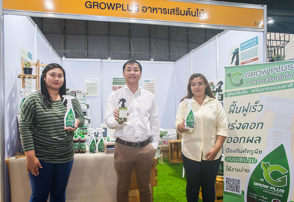 มิติหุ้น – ณวศิน ดำรงสกุลวงษ์ (กลาง) กรรมการและผู้จัดการทั่วไป พร้อมด้วยเจ้าหน้าที่ บริษัท อินเตอร์ไฮด์ จำกัด (มหาชน) หรือ IHL ร่วมออกบูธแสดงสินค้า “GROW PLUS” อะมิโน โปรตีนชนิดสเปรย์ แปรรูปจากเศษหนัง เพื่อใช้งานในครัวเรือน เป็นผลิตภัณฑ์ของบริษัท อินเตอร์กรีน จำกัด เป็นบริษัทย่อยของ IHL ซึ่งได้รับการตอบรับจากลูกค้าที่
