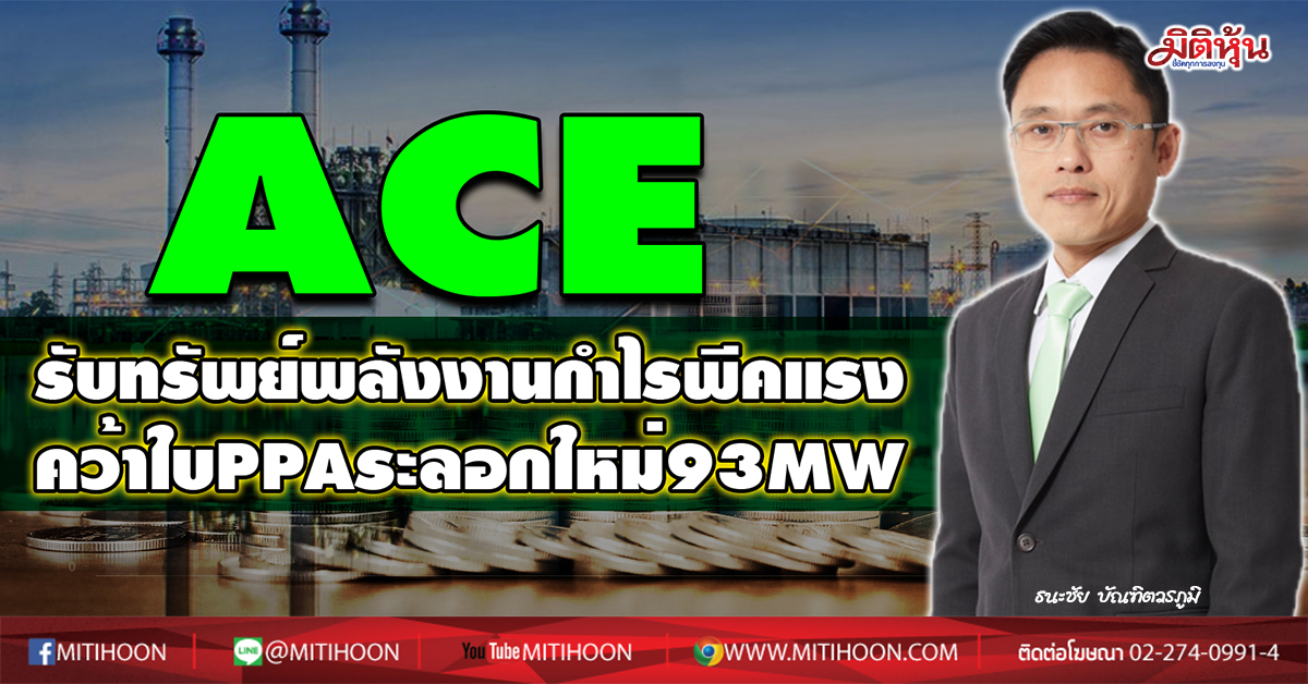 มิติหุ้น-ACE ชี้งบไตรมาส4/63 โตเด่น เหตุลุย COD โรงไฟฟ้า UWC ครบ 26.9 MW แถมบุ๊ก“โรงไฟฟ้าขยะชุมชนจ.กระบี่”ขนาด 6 MWเร็วกว่ากำหนด หนุนทั้งปี 63 มีโรงไฟฟ้าในพอร์ต 245.91 MW โชว์กำไรนิวไฮทะลุเป้า จับตางบไตรมาส 1/64 กระฉูด หลังบุ๊กโรงไฟฟ้าเต็มปี แถมเตรียมคว้าใบ PPA เพิ่ม 93 MW หวังบรรลุเป้าในปี 67 มีโรงไฟฟ้า 1,000 MW