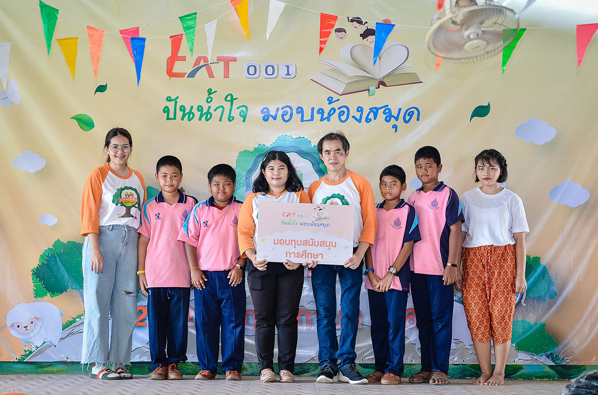 ในโอกาสนี้ สมพงษ์ อัศวบุญมี ผู้จัดการฝ่ายผลิตภัณฑ์โทรศัพท์ บริษัท กสท โทรคมนาคม จำกัด (มหาชน) หรือ CAT ได้กล่าวถึงความเป็นมาของการจัดกิจกรรม CAT 001 ปันน้ำใจ มอบห้องสมุด ว่า “CAT ได้จัดกิจกรรมนี้มาตั้งแต่ปี 2554 โดยเวียนจัดไปทุกภาคของประเทศ ปีนี้เป็นปีที่ 9 กลับมาจัดที่ภาคตะวันตกอีกครั้ง ซึ่งก่อนหน้านี้ได้เคยไปจัดแล้วที่จังหวัดประจวบคิรีขันธ์ เราจัดกิจกรรมนี้เพื่อปรับปรุงห้องสมุดให้กับโรงเรียนที่อยู่ห่างไกลและขาดแคลน เป็นการเปิดโอกาสให้กับนักเรียน และสร้างความเท่าเทียมกันให้กับนักเรียน ทำให้นักเรียนได้มีห้องสมุดสำหรับค้นคว้าหาความรู้เพิ่มเติม โดยได้เชิญลูกค้าจิตอาสาในกลุ่มผลิตภัณฑ์โทรศัพท์มาร่วมทำกิจกรรมครั้งนี้ด้วย ถือว่าเป็นกิจกรรมที่ทำประโยชน์ให้กับสังคมและสร้างความสัมพันธ์ที่ดีกับกลุ่มลูกค้าด้วย”