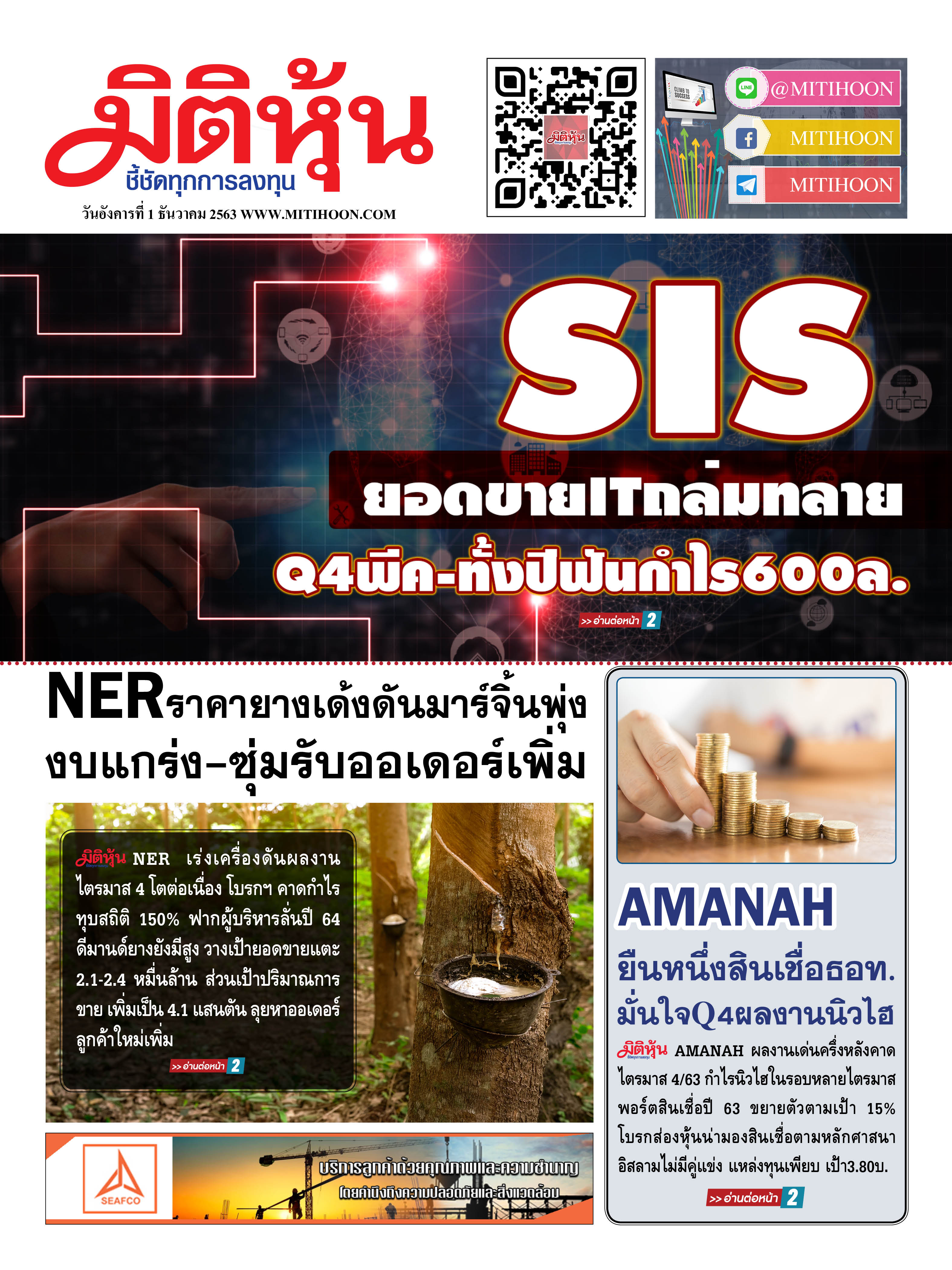 นสพ.มิติหุ้น “ชี้ชัดทุกการลงทุน” ฉบับวันที่ 1 ธันวาคม 2563