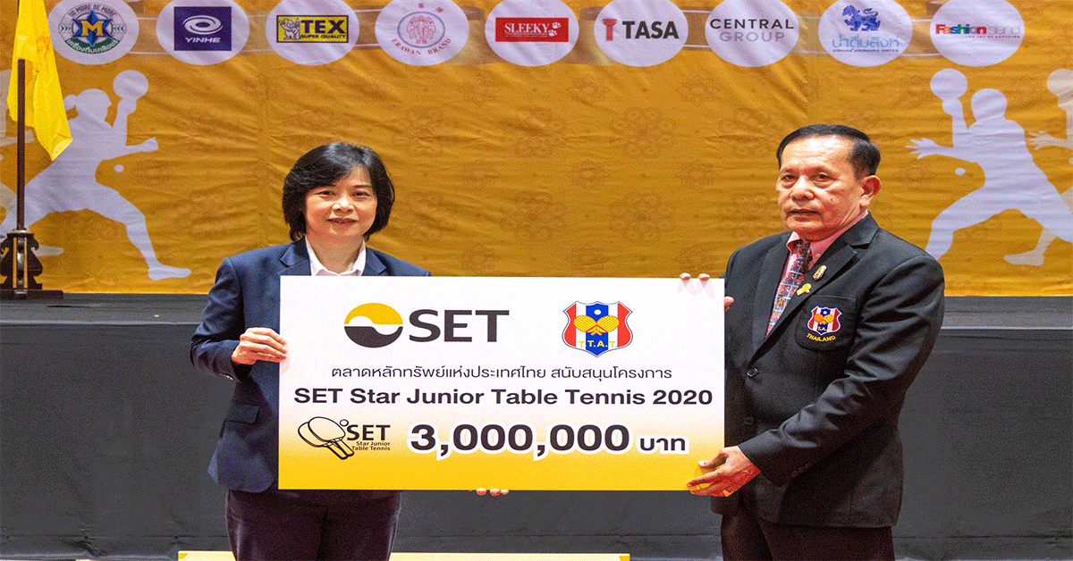มิติหุ้น-ตลาดหลักทรัพย์แห่งประเทศไทย มอบเงินสนับสนุนโครงการ SET Star Junior Table Tennis ต่อเนื่องปีที่ 7 ให้แก่สมาคมกีฬาเทเบิลเทนนิสแห่งประเทศไทย เพื่อสนับสนุนและพัฒนาศักยภาพนักกีฬาเทเบิลเทนนิสของเยาวชนไทย โดย ยุภาวรรณ ศิริชัยนฤมิตร ผู้ช่วยผู้จัดการ ตลาดหลักทรัพย์ฯ เป็นตัวแทนมอบ และนาวาเอก (พิเศษ) สมศักดิ์ ตรีธาร อุปนายกสมาคมกีฬาเทเบิลเทนนิสแห่งประเทศไทย เป็นผู้รับมอบ ในการแข่งขัน “SET เทเบิลเทนนิสเพื่อความชนะเลิศแห่งประเทศไทย ชิงถ้วยพระราชทาน ประจำปี 2563” ทั้งนี้ ตลอดระยะเวลา 7 ปี มีเยาวชนร่วมโครงการ SET Star Junior Table Tennis กว่า 28,000 คน ทั่วประเทศ