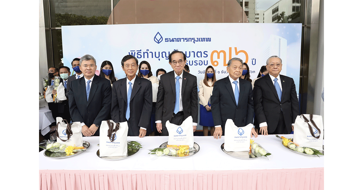 มิติหุ้น-76 ปี-นายปิติ สิทธิอำนวย ประธานกรรมการธนาคาร (ขวา) นายเดชา ตุลานันท์ ประธานกรรมการบริหาร (ที่ 2 จากขวา) พร้อมด้วยกรรมการธนาคาร คณะผู้บริหารและพนักงาน ธนาคารกรุงเทพ จำกัด (มหาชน) ร่วมทำบุญตักบาตรพระสงฆ์ 100 รูป ในโอกาสวันคล้ายวันก่อตั้งธนาคารครบปีที่ 76 ซึ่งตรงกับวันที่ 1 ธันวาคมของทุกปี โดยในปี 2563 นี้ ธนาคารได้นิมนต์พระสงฆ์จาก 5 วัด ประกอบด้วย วัดยานนาวา วัดเทพศิรินทราวาสราชวรวิหาร วัดไตรมิตรวิทยารามวรวิหาร วัดปทุมคงคาราชวรวิหาร และวัดราชสิงขร เพื่อรับบาตร ณ บริเวณลานด้านหน้าอาคารสำนักงานใหญ่ ธนาคารกรุงเทพ ถนนสีลม./