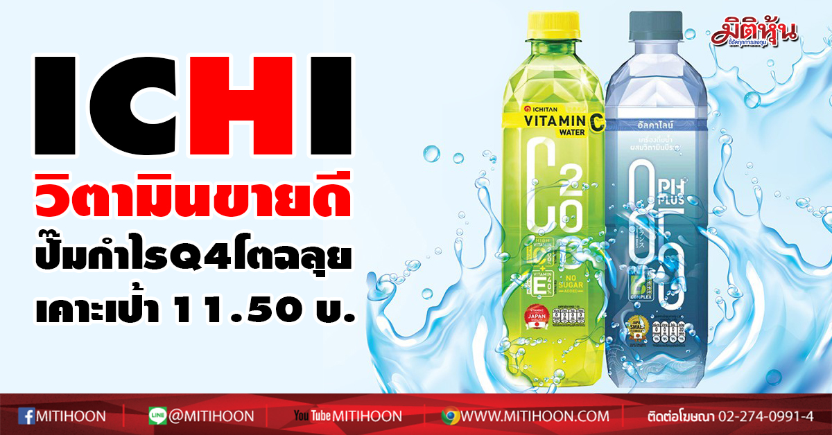 ผู้สื่อข่าว “มิติหุ้น” รายงานว่า บมจ.อิชิตัน กรุ๊ป หรือ ICHI โดย “บล.ฟินันเซีย ไซรัส” เปิดเผยว่า แนวโน้มผลงานไตรมาส 4/63 คาดกำไรอยู่ที่ 95-110 ล้านบาท เติบโตจากช่วงเดียวกันของปีก่อน แต่ชะลอตัวจากไตรมาสก่อน โดยผู้บริหาร ICHI ให้ข้อมูลว่ารายได้ Vitamin Water นับตั้งแต่ต้นไตรมาส 4/63 ยังดีเพราะเพิ่งออกโฆษณาตอนต้นไตรมาสและทำโปรโมชั่นกับ 7-11