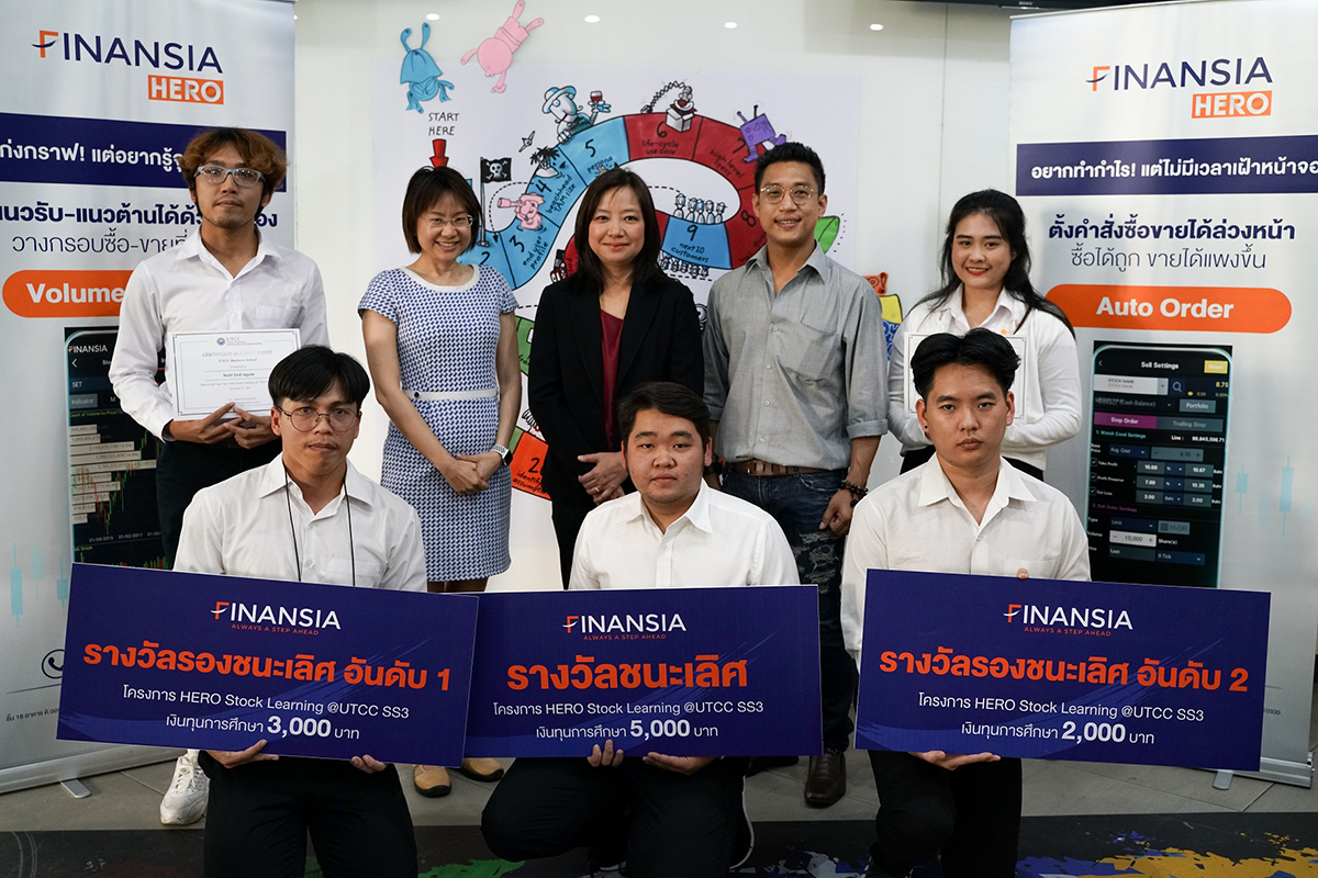 มิติหุ้น – คุณนุสรา รุ่นเจริญ (กลาง) กรรมการบริหาร บริษัทหลักทรัพย์ ฟินันเซีย ไซรัส จำกัด (มหาชน) ร่วมด้วย ดร.ศุภสัณห์ ปรีดาวิภาต (ที่2 จากขวา) รองคณบดีฝ่ายกิจการนักศึกษา และผู้ช่วยศาสตราจารย์ ดร.ลลิตา หงษ์รัตนวงศ์ (ที่2 จากซ้าย) อาจารย์ประจำกลุ่มวิชาการเงิน คณะบริหารธุรกิจ มหาวิทยาลัยหอการค้าไทย ร่วมเป็นประธานในพิธีมอบเกียรติบัตรและทุนการศึกษาแก่ผู้ชนะการแข่งขันเทรดหุ้นจำลอง ในโครงการ HERO Stock Learning @UTCC Season 3 พร้อมด้วยคณะอาจารย์และนักศึกษาจากคณะบริหารธุรกิจ ซึ่งนักศึกษาที่เข้าร่วมโครงการจะได้เรียนรู้เทคนิคสูตรการลงทุนต่างๆ จากแอพพลิเคชั่น “FINANSIA HERO” ฟรีตลอดโครงการ โดยกิจกรรมนี้มีวัตถุประสงค์เพื่อเป็นการปลูกฝังให้นักศึกษาได้รับความรู้เกี่ยวกับการบริหารสินทรัพย์เพื่อก่อให้เกิดความมั่นคงทางการเงินอย่างยั่งยืน และเป็นรากฐานในการประกอบอาชีพต่อไปในอนาคต เมื่อวันที่ 4 ธ.ค. 63 ณ ห้อง IDE อาคาร 1 ชั้น 1 มหาวิทยาลัยหอการค้าไทย