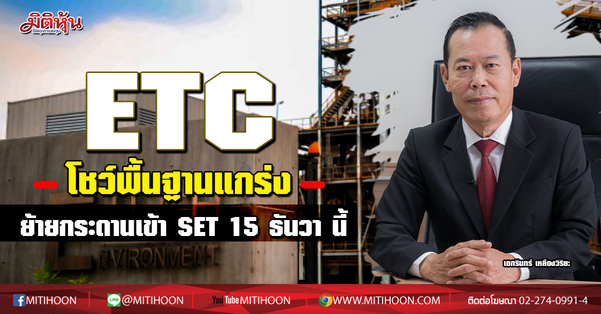 นายเอกรินทร์ เหลืองวิริยะ ประธานเจ้าหน้าที่บริหารและกรรมการผู้จัดการ บริษัท เอิร์ธ เท็ค เอนไวรอนเมนท์ จำกัด (มหาชน) หรือ ETC ผู้นำโรงไฟฟ้าขยะอุตสาหกรรมครบวงจรแห่งแรกในประเทศไทย กล่าวว่า บริษัทฯ เตรียมแผนการย้ายหลักทรัพย์จดทะเบียนของ ETC จากตลาดหลักทรัพย์ เอ็ม เอ ไอ (mai) เข้าไปซื้อขายในตลาดหลักทรัพย์แห่งประเทศไทย (SET) โดยย้ายจากหมวดทรัพยากร เป็นหมวดพลังงานและสาธารณูปโภค และใช้ชื่อย่อหลักทรัพย์ “ETC” ตามเดิม โดยให้มีผลตั้งแต่วันที่ 15 ธันวาคม 2563