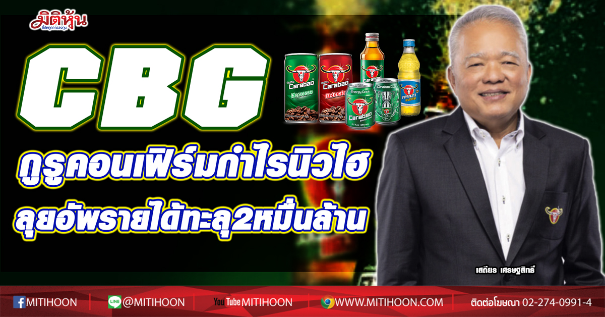 มิติหุ้น – CBG กูรูส่งผลงานไตรมาส 4/63 คาดกำไรพุ่งทุบสถิติ ส่วนกำไรทั้งปีเติบโตไม่ต่ำกว่า 50.3% ดันมาร์เก็ตแคปทะลุแสนล้านบาท แนะนำ ทยอยซื้อ เคาะเป้าเหมสะสม 130 บาท ฟากผู้บริหารเดินแผนปั๊มรายได้ปี 65 แตะ 2 หมื่นล้าน