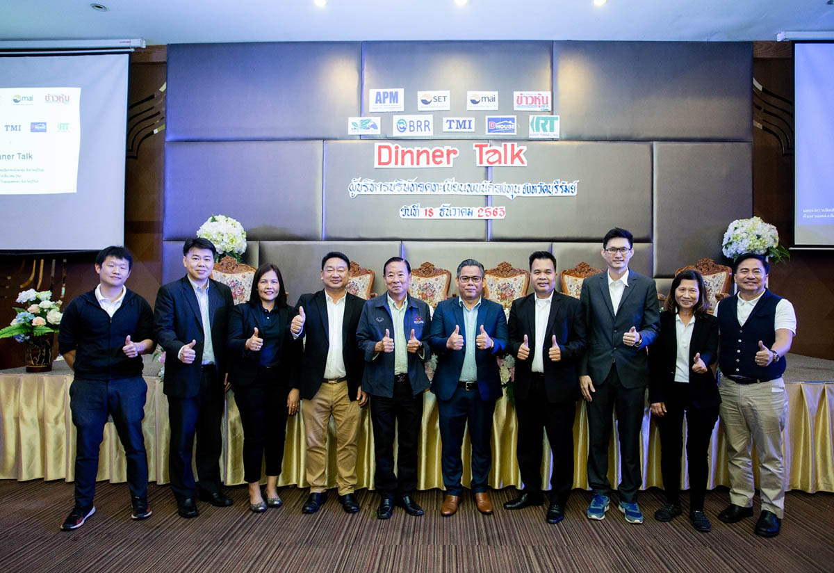 มิติหุ้น – นายพงศ์พจน์ เลิศรุ้งพร ประธานเจ้าหน้าที่บริหาร บมจ.ดีเฮ้าส์พัฒนา (DHOUSE) และ นางเมชญา แก้วดวงดี ผู้ช่วยกรรมการผู้จัดการ สายงานพัฒนาธุรกิจ บมจ. ไร้ท์ทันเน็ลลิ่ง (RT) พร้อมด้วย ผู้บริหาร บมจ.นอร์ทอีส รับเบอร์ (NER) บมจ. ธีระมงคล อุตสาหกรรม (TMI) บมจ. น้ำตาลบุรีรัมย์ (BRR) ร่วมด้วย นายสมภพ ศักดิ์พันธ์พนม ประธานกรรมการ บริษัท แอสเซท โปร แมเนจเมนท์ จำกัด (APM) และ นายสุภชัย ปกป้อง รองหัวหน้ากองบรรณาธิ
