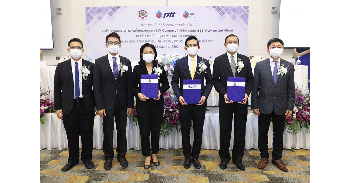 มิติหุ้น- นายอรรถพล ฤกษ์พิบูลย์ ประธานเจ้าหน้าที่บริหารและกรรมการผู้จัดการใหญ่ บริษัท ปตท. จำกัด (มหาชน) (ที่ 3 จากขวา) นางสาวสมจิณณ์ พิลึก ผู้ว่าการการนิคมอุตสาหกรรมแห่งประเทศไทย (ที่ 3 จากซ้าย) และนายพิชัยรัตน์ จิรานันรัตน์ กรรมการผู้จัดการ บริษัท พีทีที เอนเนอร์ยี่ โซลูชั่นส์ จำกัด (ขวา) ลงนามในบันทึกข้อตกลงความร่วมมือการศึกษาแนวทางการจัดตั้งหน่วยธุรกิจ (JV Company) เพื่อดำเนินการธุรกิจดิจิทัลแพลตฟอร์มร่วมกัน ระหว่าง บริษัท ปตท. จำกัด (มหาชน) การนิคมอุตสาหกรรมแห่งประเทศไทย และ บริษัท พีทีที เอนเนอร์ยี่ โซลูชั่นส์ จำกัด โดยมี นายวิทวัส สวัสดิ์-ชูโต ประธานเจ้าหน้าที่เทคโนโลยีและวิศวกรรม บริษัท ปตท. จำกัด (มหาชน) (ที่ 2 จากขวา) นายอัฐพล จิรวัฒน์จรรยา รองผู้ว่าการการนิคมอุตสาหกรรมแห่งประเทศไทย (ที่ 2 จากซ้าย) และนายเกียรติศักดิ์ เพ็ชรน้ำเขียว ผู้จัดการฝ่าย Strategic & Business Transformation Development บริษัท พีทีที เอนเนอร์ยี่ โซลูชั่นส์ จำกัด (ซ้าย) ร่วมเป็นสักขีพยาน เพื่อศึกษารูปแบบการลงทุนในการให้บริการบนแพลตฟอร์มดิจิทัล ที่จะช่วยกระตุ้นให้ผู้ประกอบการภาคอุตสาหกรรมหันมาใช้ระบบหุ่นยนต์ ระบบอัตโนมัติและเทคโนโลยีดิจิทัล มาเพิ่มประสิทธิภาพและยกระดับความสามารถการแข่งขันทางเศรษฐกิจ ตลอดจนสร้างมูลค่าเพิ่มให้อุตสาหกรรมไทยก้าวสู่สากลอย่างยั่งยืน