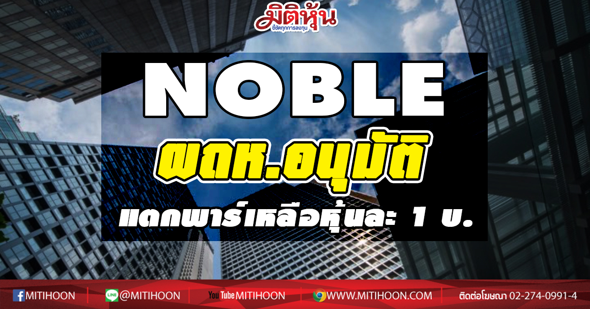ผู้สื่อข่าว “มิติหุ้น” รายงานว่า บมจ.โนเบิล ดีเวล ลอปเมนท์ (NOBLE) โดย นายอรรถวิทย์ เฉลิมทรัพยากร ประธานเจ้าหน้าที่บริหารสายงานการเงิน เปิดเผยว่า ตามที่ที่ประชุมวิสามัญผู้ถือหุ้นครั้งที่ 1/2563 เมื่อวันพุธที่ 23 ธันวาคม 2563 ของ บริษัท ได้มีมติเป็นเอกฉันท์อนุมัติให้บริษัทฯ เปลี่ยนแปลงมูลค่าหุ้นที่ตราไว้ของบริษัทฯ จากเดิมหุ้นละ 3 บาท เป็นหุ้นละ 1 บาท, แก้ไขเพิ่มเติมหนังสือบริคณห์สนธิข้อ 4 ของบริษัทฯ เพื่อให้สอดคล้องกับการ เปลี่ยนแปลงมูลค่าหุ้นที่ตราไว้ของบริษัทฯ, เพิ่มทุนจดทะเบียนจํานวน 342,353,379 บาท จากทุนจดทะเบียนจํานวน 1,369,413,525 บาท เป็นทุนจดทะเบียนจํานวน 1,711,766,904 บาท และการจัดสรรหุ้นที่ได้เพิ่มทุนดังกล่าว และแก้ไข หนังสือบริคณห์สนธิของบริษัทฯ ข้อ 4 เพื่อให้สอดคล้องกับการเพิ่มทุนจดทะเบียนนั้น