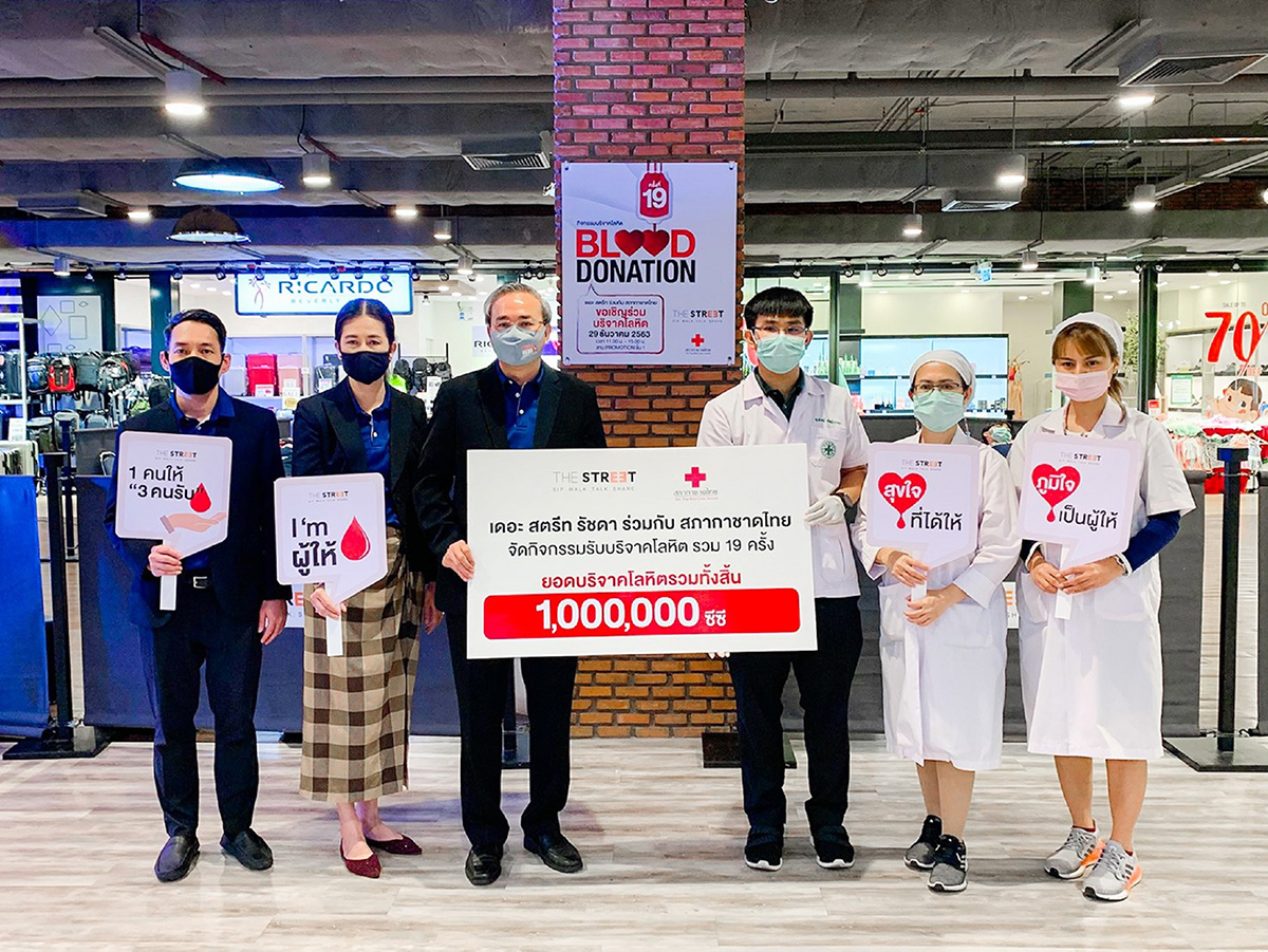 มิติหุ้น – ศูนย์การค้า เดอะ สตรีท รัชดา เฉลิมฉลองครบรอบ 5 ปี ส่งมอบโลหิตจำนวน 1,000,000 ซีซี ในกิจกรรม “Blood Donation” ครั้งที่ 19 บริจาคโลหิตผ่านวิกฤต COVID-19 ให้กับศูนย์บริจาคโลหิตแห่งชาติ สภากาชาดไทย โดยมีผู้บริหารศูนย์การค้า เดอะ สตรีท รัชดา นายพงษ์ศักดิ์ นันตวรรณกุล กรรมการผู้จัดการ พร้อมด้วย นางสาวอมรพรรณ เมธาทรงสถิตย์ ผู้อำนวยการฝ่