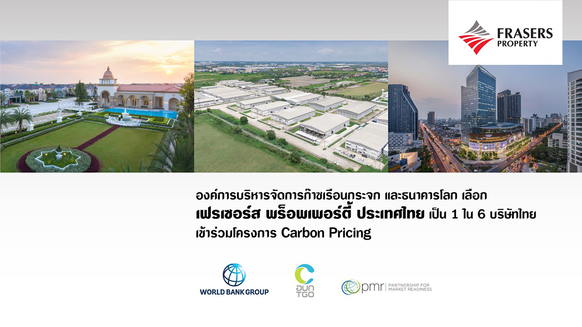 เฟรเซอร์ส พร็อพเพอร์ตี้ ประเทศไทย ให้ความสำคัญต่อการสร้างการเติบโตอย่างยั่งยืน จึงมีความมุ่งมั่นที่จะเป็นส่วนหนึ่งในการร่วมรับผิดชอบต่อเศรษฐกิจ สังคม และสิ่งแวดล้อม โดยในปี 2563 บริษัทฯ ได้ริเริ่มผลักดันโครงการพลังงานสะอาด และใช้นวัตกรรมทางความคิดใหม่ๆ เพื่อนำมาประยุกต์ใช้ในการกำหนดราคาคาร์บอนและการลงทุนเพื่อการลดก๊าซเรือนกระจก ทำให้เป็นบริษัทอสังหาริมทรัพย์เพียงรายเดียวของของประเทศไทยที่ได้รับคัดเลือกเข้าร่วม “โครงการเสริมความรู้ภาคอุตสาหกรรมด้านการกำหนดราคาคาร์บอนและการลงทุนเพื่อการลดก๊าซเรือนกระจก” (Carbon Pricing) โดยองค์การบริหารจัดการก๊าซเรือนกระจก (องค์การมหาชน) (“อบก.”) และ ธนาคารโลก (World Bank)