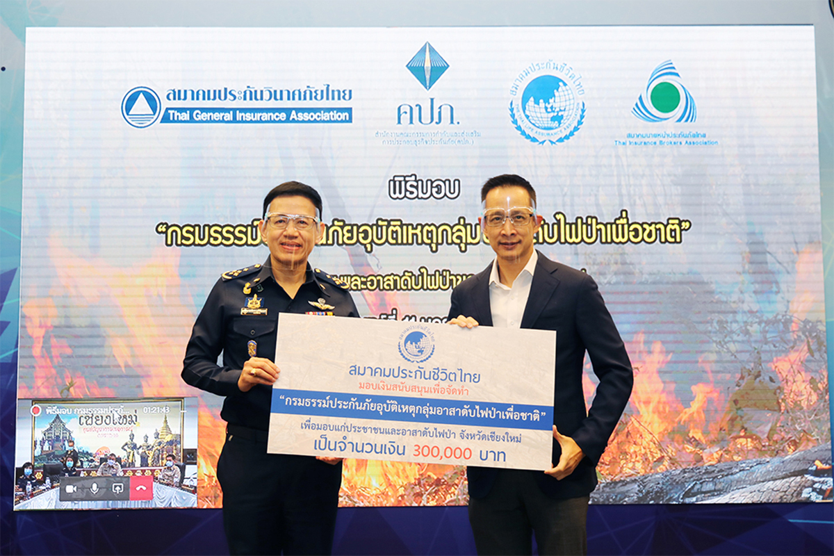 ดับไฟป่าเพื่อชาติ ให้แก่ประชาชนและอาสาสมัครดับไฟป่าของจังหวัดเชียงใหม่ จำนวน 35,000 คน เพื่อเป็นขวัญและกำลังใจ ตลอดจนเป็นการช่วยแบ่งเบาภาระของครอบครัวในกรณีเกิดอุบัติเหตุจากการปฏิบัติการดับไฟป่าในเขตพื้นที่จังหวัดเชียงใหม่ ทั้งนี้ ได้รับเกียรติจากนายเจริญฤทธิ์ สงวนสัตย์ ผู้ว่าราชการจังหวัดเชียงใหม่ เป็นผู้รับมอบกรมธรรม์