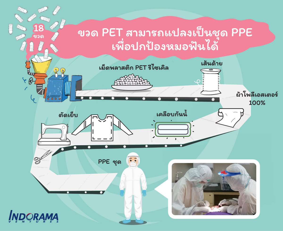 รีไซเคิลจากขวด PET สำหรับผลิตชุด PPE เพียงรายเดียวในประเทศไทย เรารู้สึกภาคภูมิใจที่ได้เห็นการใช้ประโยชน์สำหรับบุคคลากรทางการแพทย์ทั่วประเทศ นอกจากนี้ ยังสะท้อนให้เห็นประโยชน์ของการใช้งานพลาสติกในฐานะวัสดุที่ช่วยเพิ่มสุขอนามัยได้เป็นอย่างดี และสามารถเวียนนำกลับมาสร้างคุณค่าเพิ่มได้อีก ซึ่งเป็นประโยชน์ต่อสังคมในภาพรวมและเป็นการใช้ทรัพยากรให้เกิดคุณค่าสูงสุดตามแนวทางเศรษฐกิจหมุนเวียนที่แท้จริงอีกด้วย”