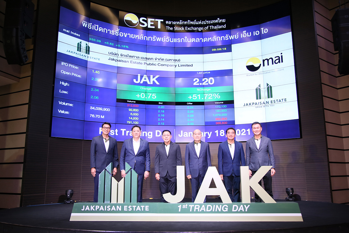 มิติหุ้น – แมนพงศ์ เสนาณรงค์ รองผู้จัดการ หัวหน้าสายงานผู้ออกหลักทรัพย์ ตลาดหลักทรัพย์แห่งประเทศไทย ประพันธ์ เจริญประวัติ ผู้จัดการตลาดหลักทรัพย์ เอ็ม เอ ไอ พร้อมด้วย พลเรือเอก ณะ อารีนิจ ประธานกรรมการบริษัท วีระพันธ์ จักรไพศาล กรรมการผู้จัดการ บมจ. จักรไพศาล เอสเตท ร่วมพิธีเปิดการซื้อขายวั