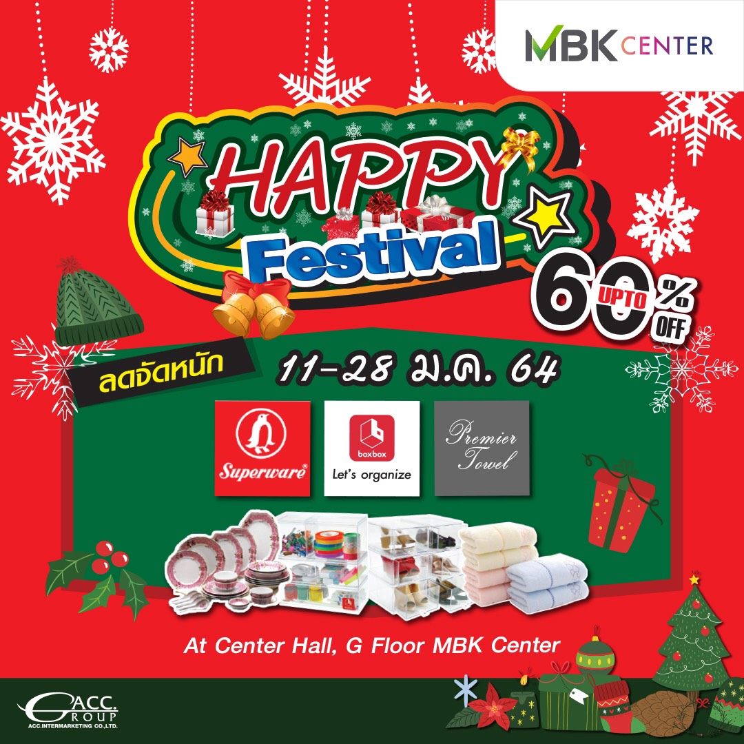 มิติหุ้น – ศูนย์การค้า เอ็ม บี เค เซ็นเตอร์ เอาใจคนรักบ้านในงาน HAPPY Festival มหกรรมสินค้าราคาถูกกับสินค้าเครื่องใช้ในครัวเรือน ยกขบวนนำมาลดราคาสุดพิเศษกว่า 80 % ตั้งแต่วันนี้ถึง 28 มกราคม 2564 ชั้น G ลานเซ็นเตอร์ ฮอลล์ อาทิ เครื่องครัว จาน ชาม เมลามีน จาก ศรีไทยซุปเปอร์แวร์ ลดเฉลี่ย 40-70% พลาสติก กล่องอเนกประสงค์ ของใช้เบ็ดเตล็ดในครัวเรือน จาก นำง่ายฮง ราคาเริ่มต้นเพียง 99 บาท นอกจากนี้ยังมี ผ้าขนหนู ผ้าห่ม ผ้านวม สินค้าคุณภาพส่งออกราคาโรงงาน เริ่มต้นเพียง 50 บาท เสื้อสูท เสื้อโคท เสื้อผ้าบูติกสตรี ราคาพิเศษเริ่มต้นเพียง 150 บาทเท่านั้น