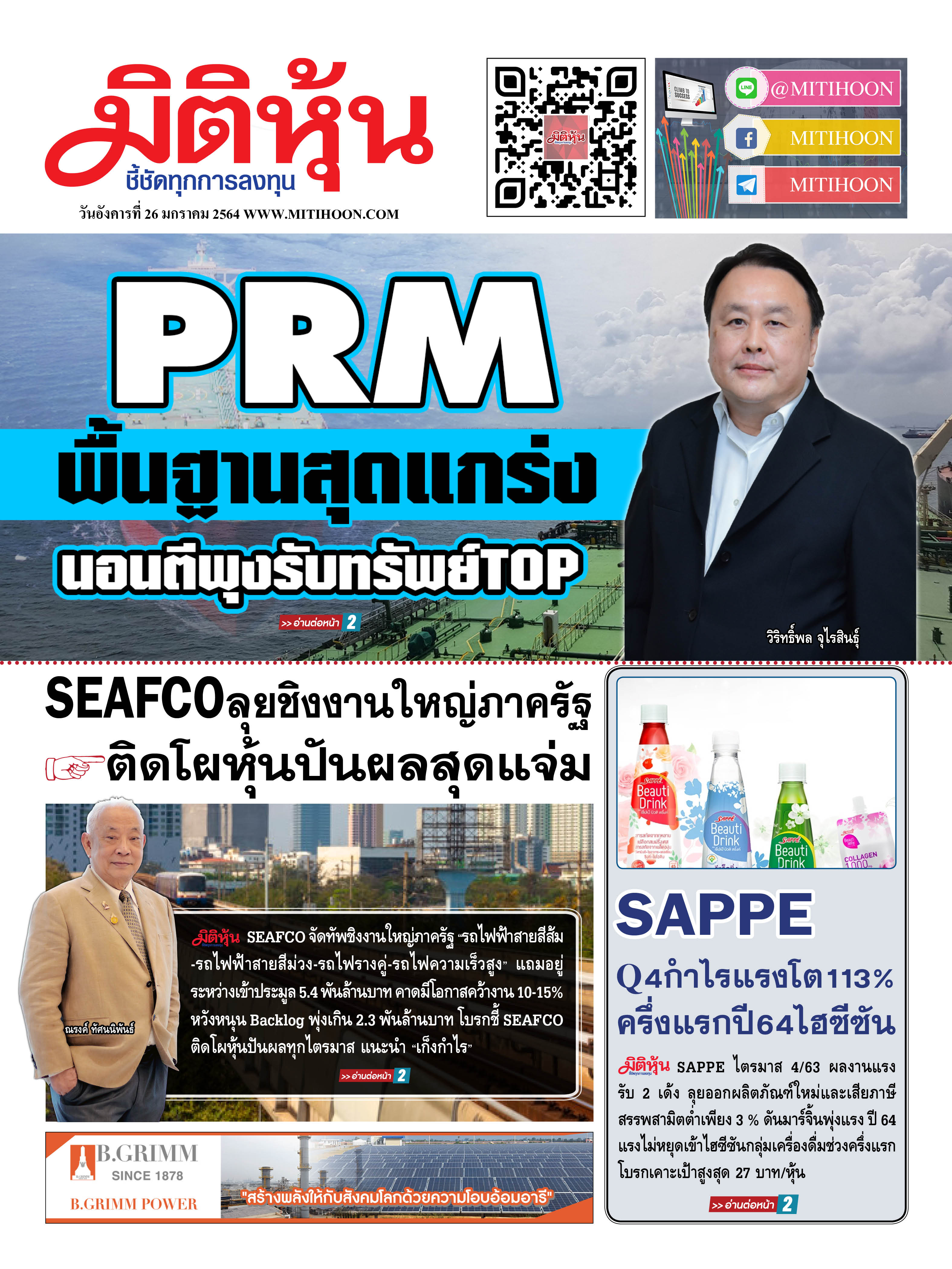 นสพ.มิติหุ้น “ชี้ชัดทุกการลงทุน” ฉบับวันที่ 26 มกราคม 2564