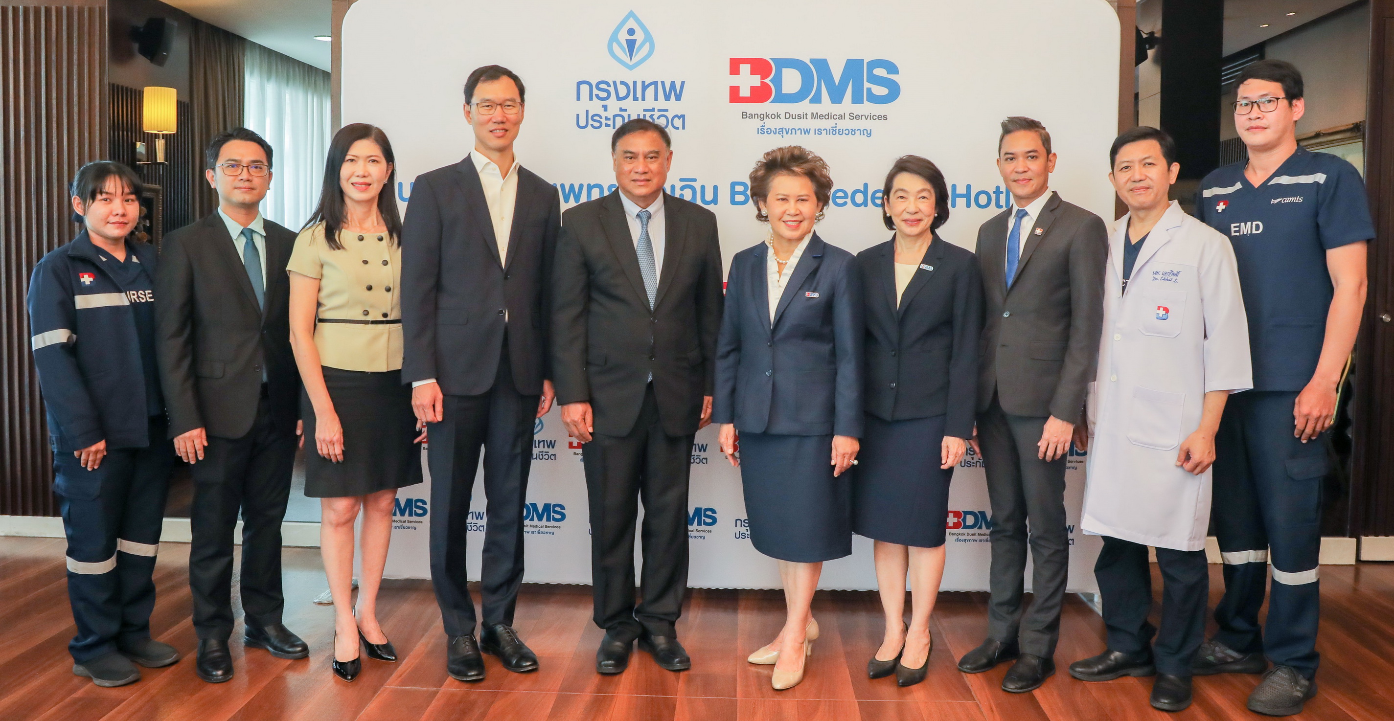 นางนฤมล น้อยอ่ำ รองกรรมการผู้อำนวยการใหญ่อาวุโสและประธานเจ้าหน้าที่บริหารด้านการเงิน บริษัท กรุงเทพดุสิตเวชการ จำกัด (มหาชน) หรือ BDMS เปิดเผยถึงความร่วมมือกับ บมจ. กรุงเทพประกันชีวิต ในครั้งนี้ว่า นับเป็นการเปิดฉากปี 2564 ด้วยความสำเร็จอีกขั้นของ BDMS ที่ได้ร่วมมือกับ บมจ.กรุงเทพประกันชีวิต ในการให้บริการการแพทย์ฉุกเฉินตลอด 24 ชั่วโมงแก่กลุ่มลูกค้าของ บมจ.กรุงเทพประกันชีวิต โดยมีเป้าหมายเพื่อช่วยชีวิตผู้ป่วย ให้ได้รับการดูแลรักษาอย่างทันท่วงที รวดเร็ว และปลอดภัย