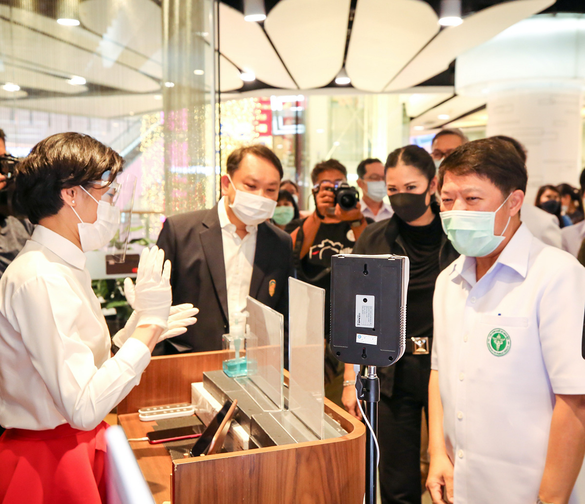 มิติหุ้น – คณะกรรมการตรวจประเมินตามมาตรฐานความปลอดภัยด้านสุขอนามัย Amazing Thailand Safety and Health Administration : SHA นำโดย อธิบดีกรมอนามัย นายแพทย์สุวรรณชัย วัฒนายิ่งเจริญชัย (ที่ 3 จากซ้าย) เข้าตรวจประเมิน ทรูสเฟียร์ สาขาเซ็นทรัลเวิลด์ สถานประกอบการที่ได้รับ