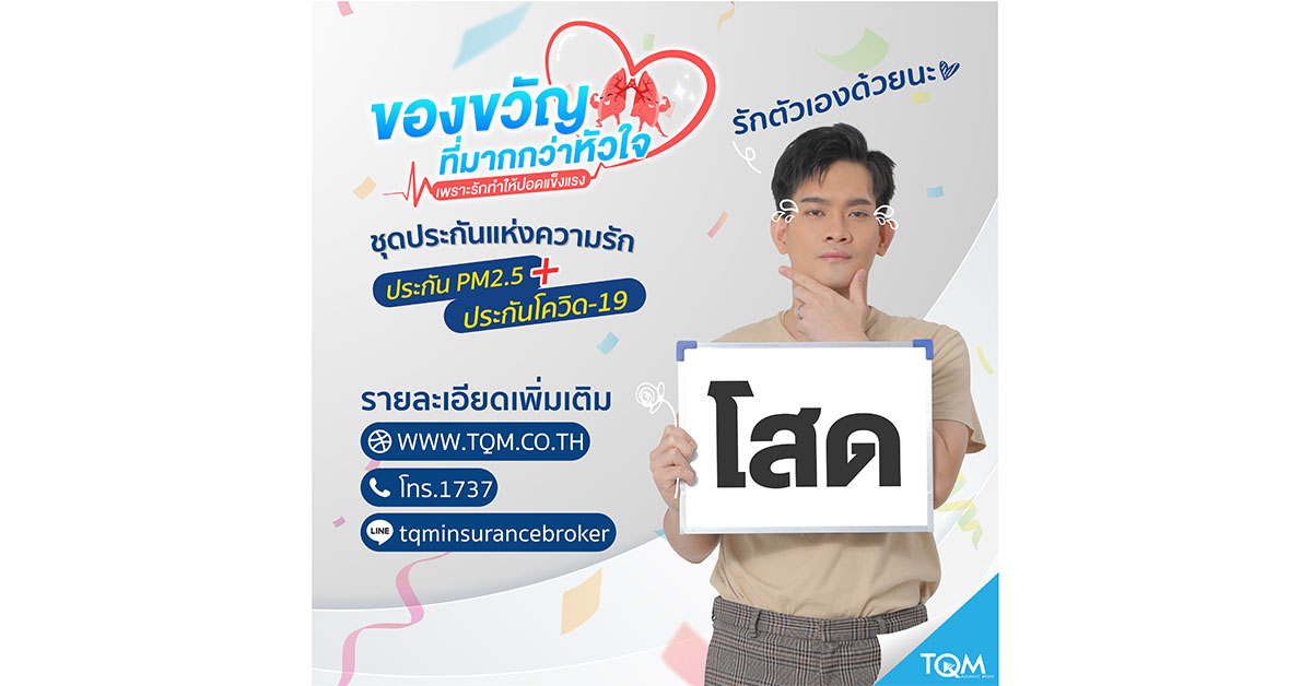 มิติหุ้น – บมจ.ทีคิวเอ็ม คอร์ปอเรชั่น โดยทีคิวเอ็ม อินชัวร์รันส์ โบรคเกอร์ (TQM) ปล่อยแคมเปญ ต้อนรับวาเลนไทน์ด้วยของขวัญที่มากกว่า ‘หัวใจ’ ชูไอเดียเพราะรักจึงอยากให้ ‘ปอด’ แข็งแรง ชวนมอบแพคเก็จประกันปอดให้คนที่รัก ด้วยประกัน PM 2.5 คู่ประกันโควิด เบี้ยเบาๆ ราคาหลักร้อย เน้นซื้อให้กันและกันง่ายๆ ในเดือนแห่งความรักผ่านช่องทางออนไลน์