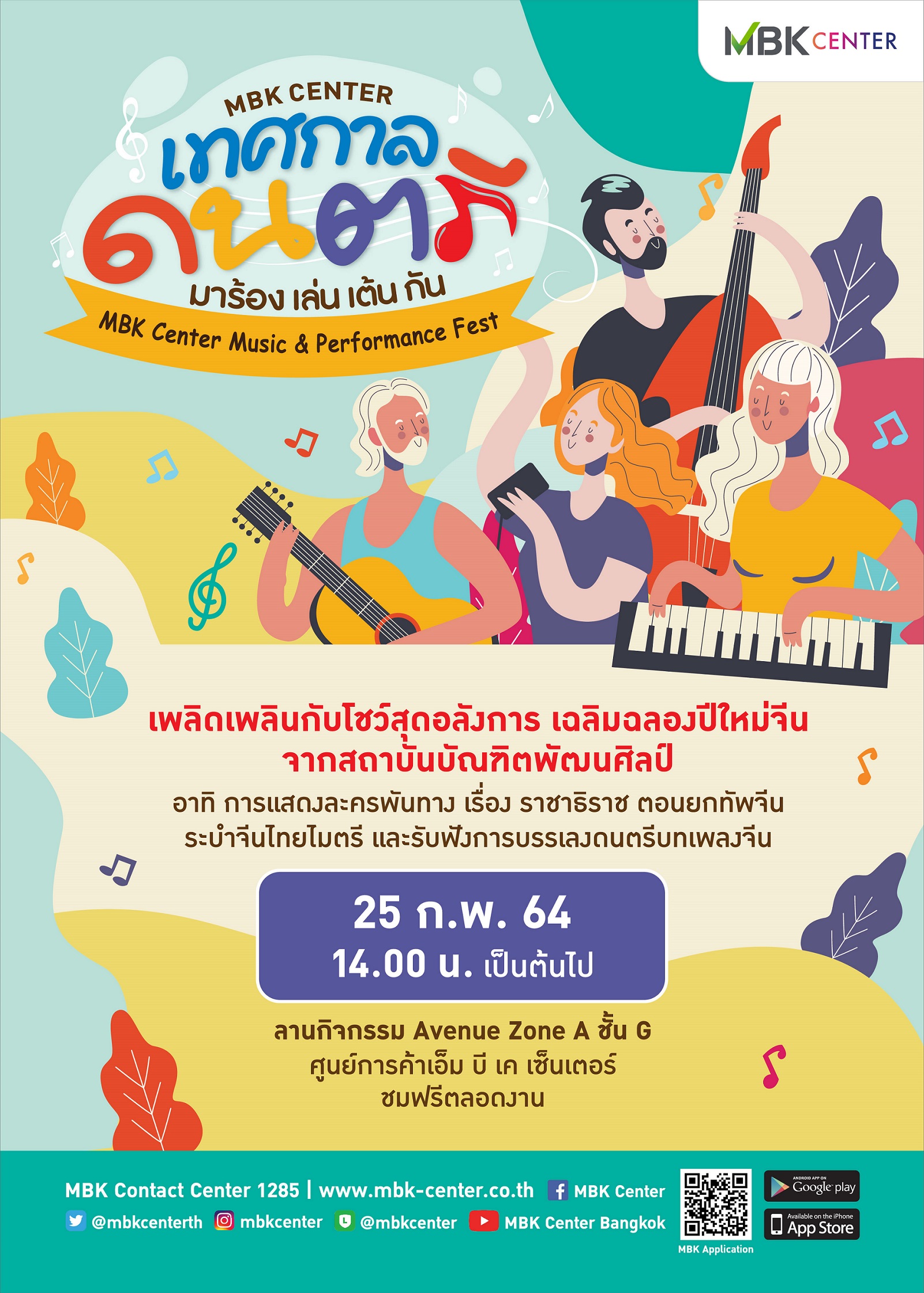 มิติหุ้น – นย์การค้า เอ็ม บี เค เซ็นเตอร์ ชวนมารื่นรมย์สุนทรีย์กับ เทศกาลดนตรี มา ร้อง เล่น เต้น กัน (MBK Center Music & Performance Fest) ซึ่งจะจัดขึ้นทุกสัปดาห์ที่ 2 และ 4 ของเดือน เพื่อส่งเสริมการอนุรักษ์ สืบสาน ศิลปวัฒนธรรม การแสดงดนตรีไทยและสากล โดยร่วมกับ สำนักวัฒนธรรม กีฬา และ การท่องเที่ยว พร้อมด้วย หน่วยงานราชการ กลุ่มวัฒนธรรมพื้นบ้าน และ สถาบันการศึกษา สนับสนุนพื้นที่
