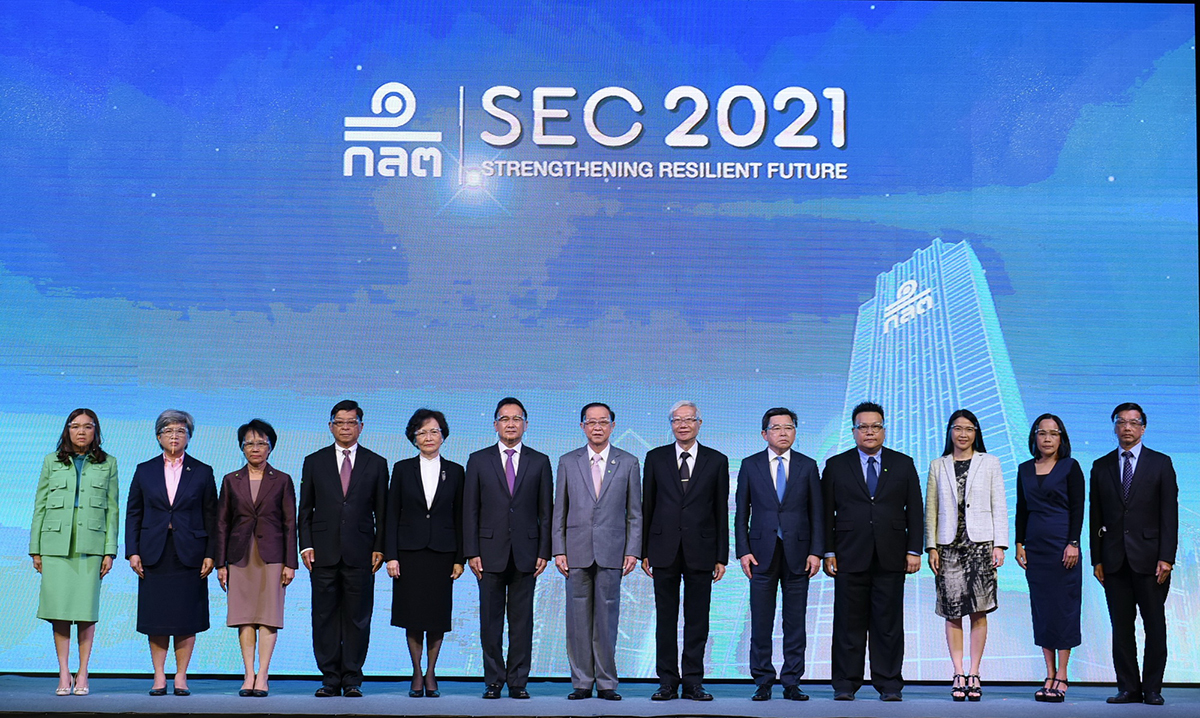 มิติหุ้น – นายอาคม เติมพิทยาไพสิฐ (กลาง) รัฐมนตรีว่าการกระทรวงการคลัง เป็นประธานเปิดงานแถลงแผนยุทธศาสตร์ ก.ล.ต ปี 2564 – 2566 ภายใต้แนวคิด “Strengthening Resilient Future” จัดโดย สำนักงานคณะกรรมการกำกับหลักทรัพย์และตลาดหลักทรัพย์ (ก.ล.ต.)และกล่าวปาฐกถาพิเศษในหัวข้อ“บทบาทตลาดทุนกับการพัฒนาเศรษฐกิจของประเทศ ปี 2564 พร้อม มอบรางวัลสำหรับโครงการ ASEAN Corporate Governance Scorecard ให้แก่บริษัทจดทะเบียนไทย โดยมี นายพิชิต อัคราทิตย์ (ที่ 6 จากขวา) ประธานกรรมการ ก.ล.ต. และ นางสาวรื่นวดี สุวรรณมงคล (ที่ 2 จากซ้าย) เลขาธิการ ก.ล.ต. ร่วมให้การต้อนรับ ณ โรงแรม ดิแอทธินี โฮเทล แบงค็อก เมื่อเร็วๆ นี้