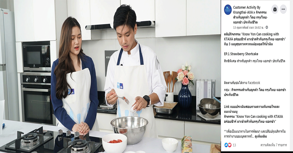 มิติหุ้น-กรุงไทย-แอกซ่า ประกันชีวิต จัดกิจกรรม “Know You Can cooking อร่อยชัวร์ มาเข้าครัวกับกรุงไทย-แอกซ่า” เพื่อให้ลูกค้าคนสำคัญที่รักการทำอาหารและสุขภาพร่วมเปิดประสบการณ์ใหม่กับการรังสรรค์ 3 เมนูสุขภาพจากหม้อทอดไร้น้ำมันที่บ้าน แบบนิว นอร์มอล (New Normal) กับเชฟแมน โดยกิจกรรมดังกล่าวจัดขึ้นผ่านช่องทางโซเชียลมีเดีย กลุ่ม Facebook ซึ่งเป็นอีกหนึ่งกิจกรรมลูกค้าที่ได้รับการตอบรับเป็นอย่างดี กิจรรมดังกล่าวได้สร้างความสุข ความสนุกสนาน พร้อมส่งเสริมการมีสุขภาพที่ดี ซึ่งเป็นไปตามนโยบายของบริษัทฯ ที่มุ่งมั่นสนับสนุน อยู่เคียงข้างเป็นเพื่อนคู่คิดแก่ลูกค้า และดูแลกันตลอดไป